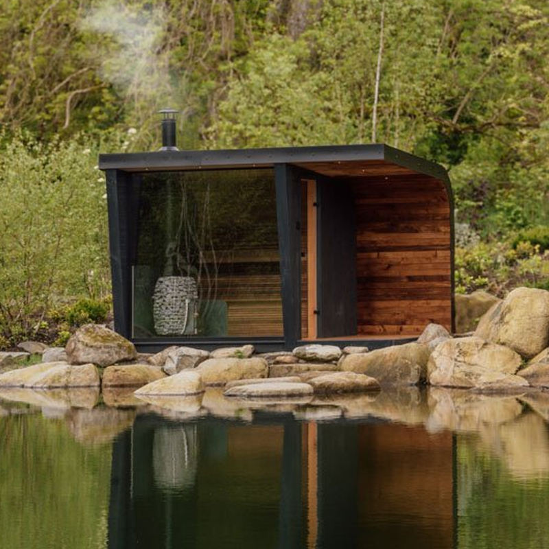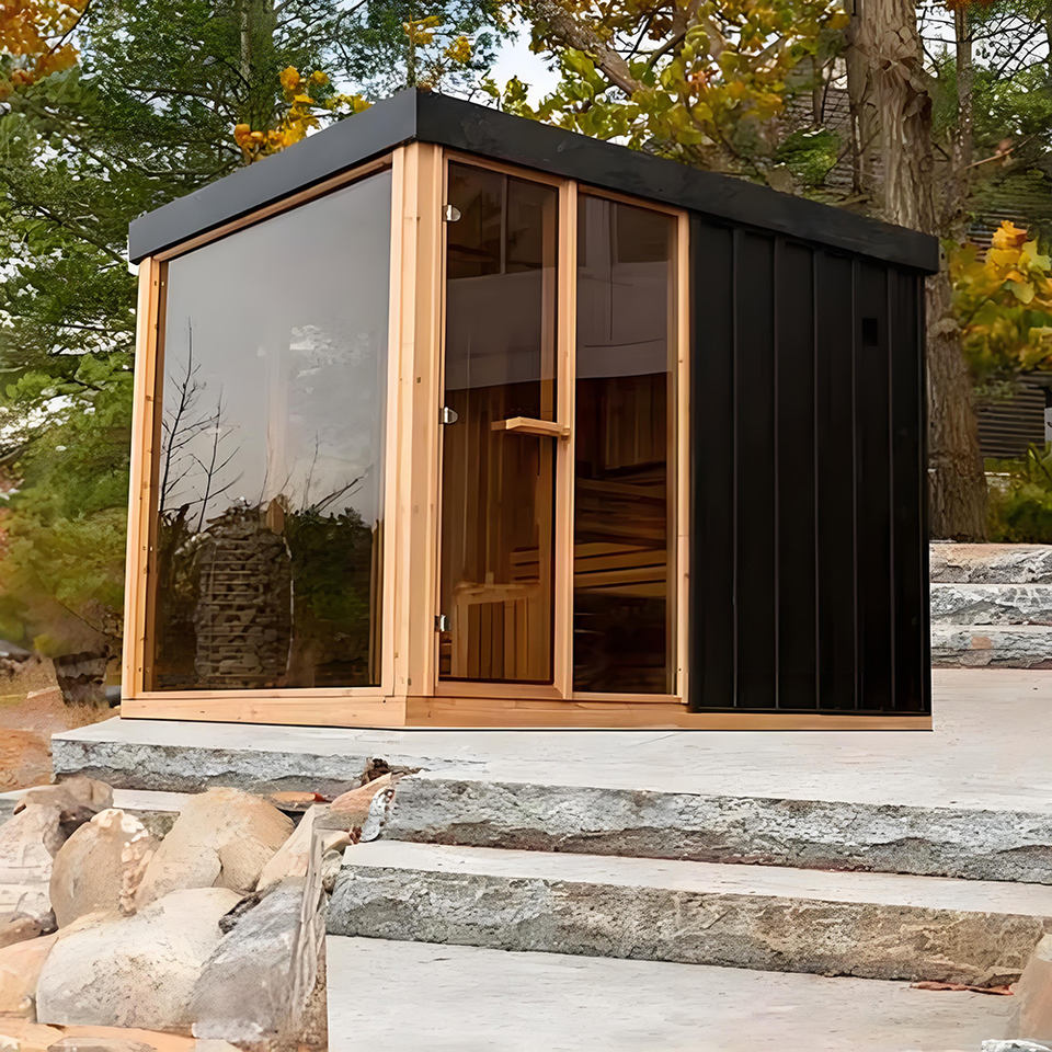 Sauna Esterna Modulare di Lusso Moderna a Legna per 1-10 Persone con Doccia e Design a Cubo