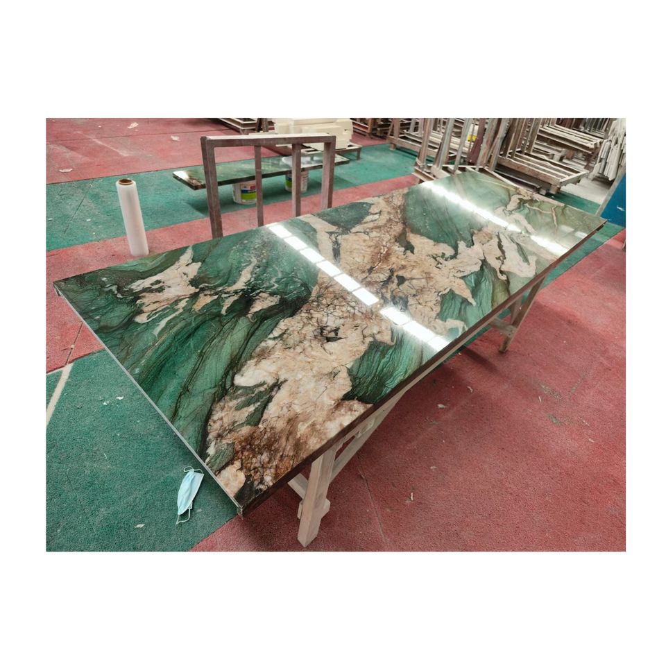 Luxury Natural Stone Custom Green Rectangle Furniture Fuchsite Crystal Quartzite Kitchen Dining Table Without Pedestal Base