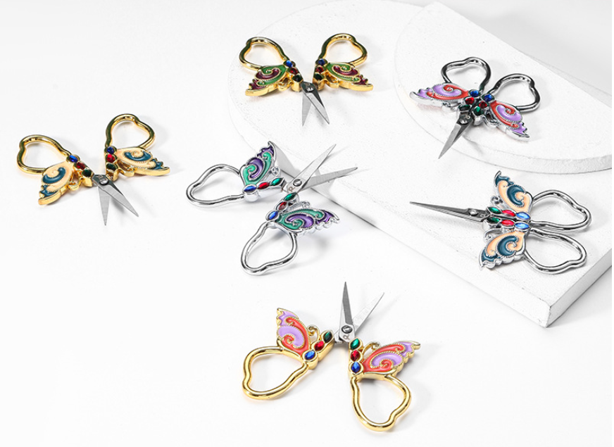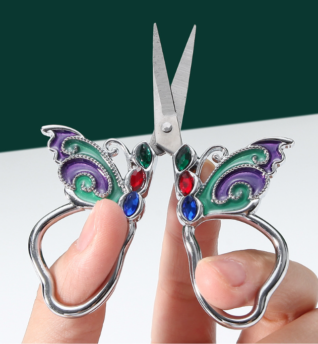 Di lusso nuovo stile a punto croce ricamato in lega di acciaio inossidabile forbici da cucire dipinte a farfalla giocattolo per uso domestico