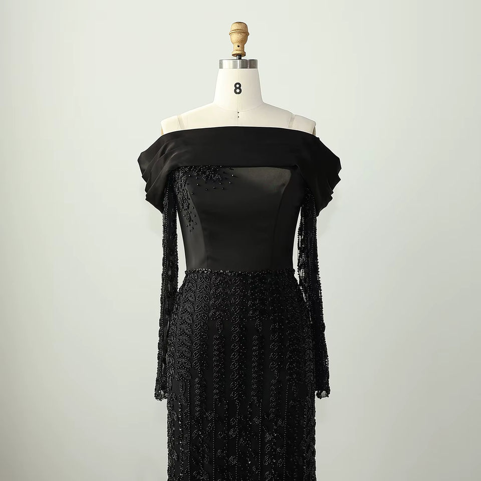 Luxury Off Shoulder Long Sleeves Black Evening Dress Dubai Elegant Women Wedding Party Gowns Lsz125-1