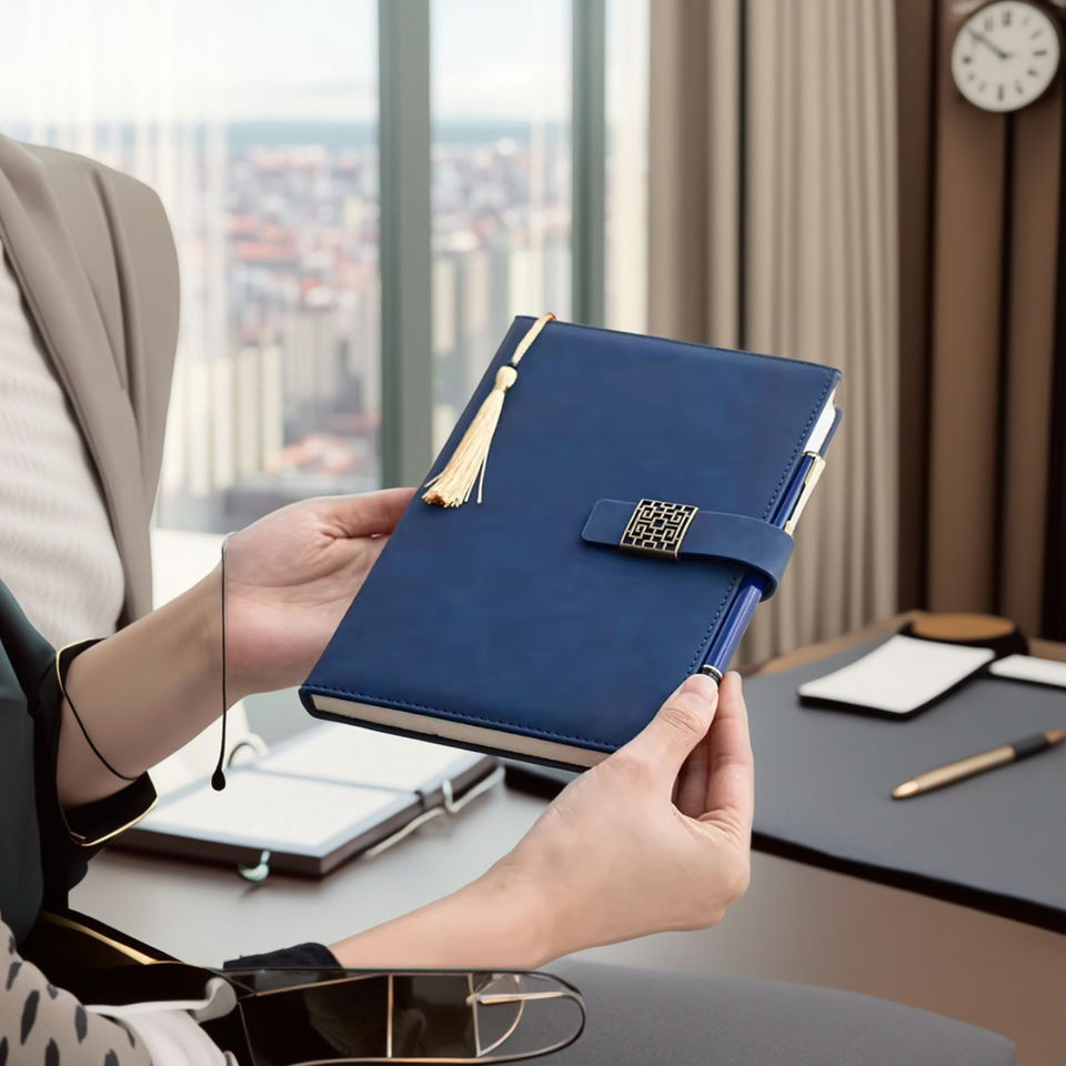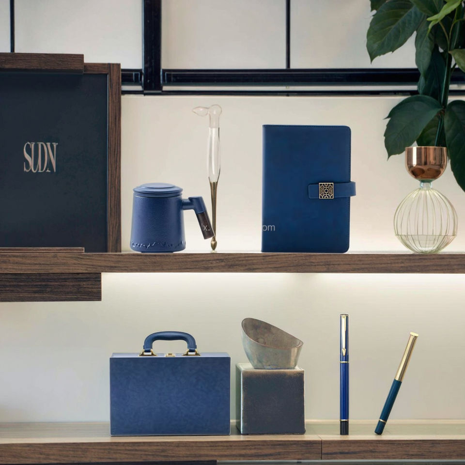 Luxury PU Leather Embroidery A5 Notebook Set Corporate Executive Souvenir Promotional Stationery Business Gift for Women and Men