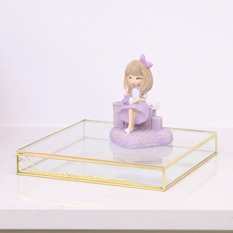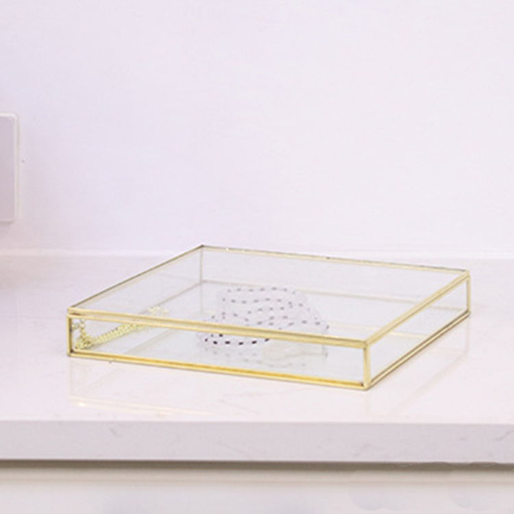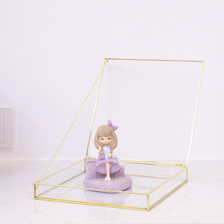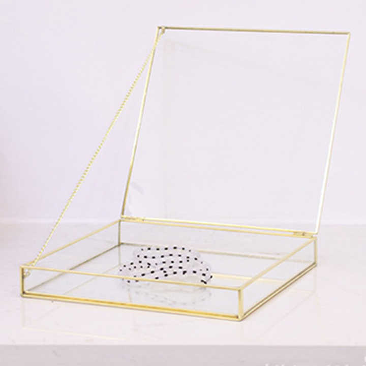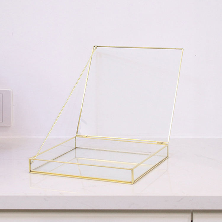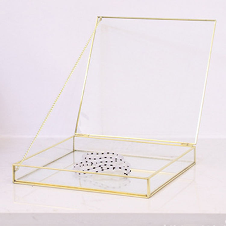 Scatola di Imballaggio di lusso Telaio In Metallo Geometrica Piccolo Vetro Trasparente Contenitore di Monili Contenitore di Monili Di Vetro