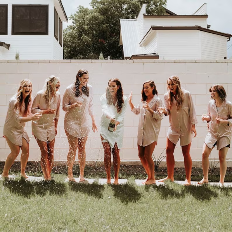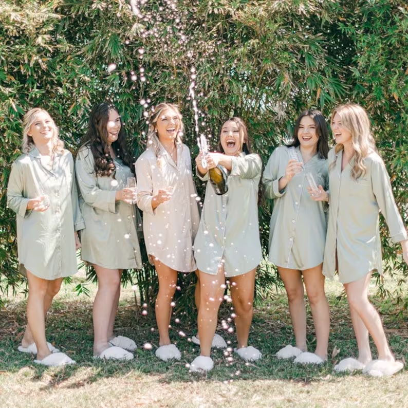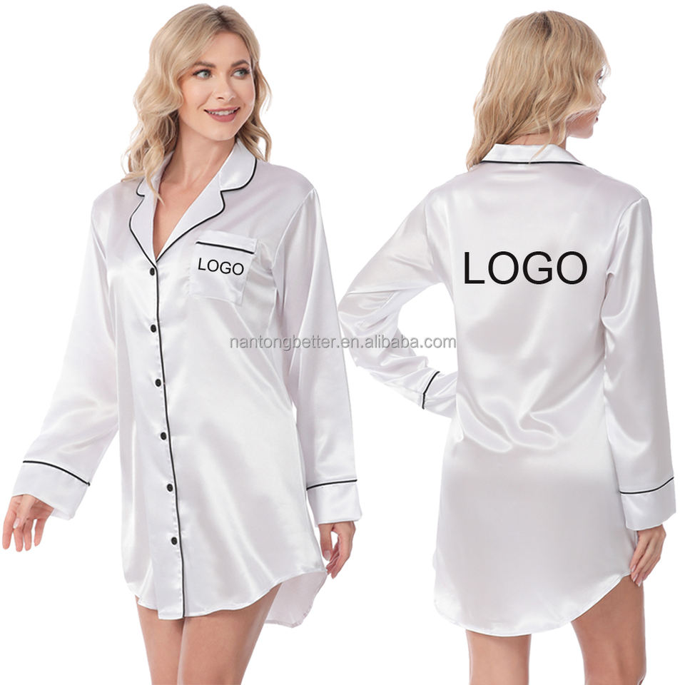 Luxury Personalized Sleep Shirt Women Silk Night Satin Pajamas Bridesmaid Sleep Nightshirt PJ's Long Sleeve Button Down Shirts