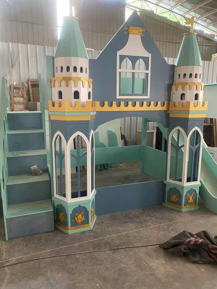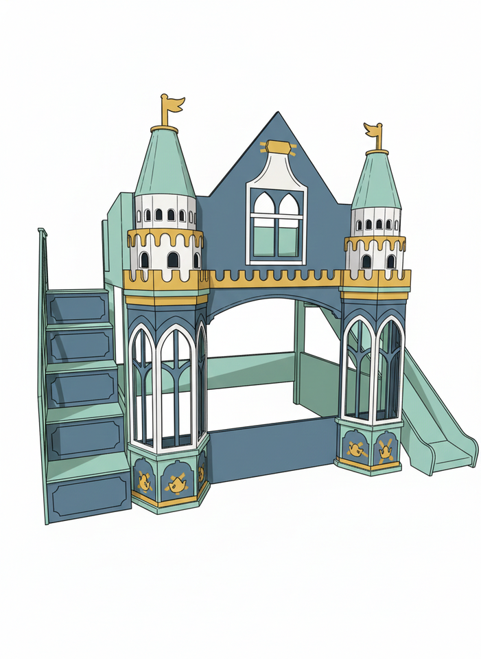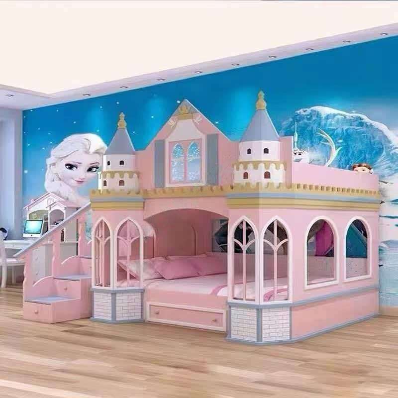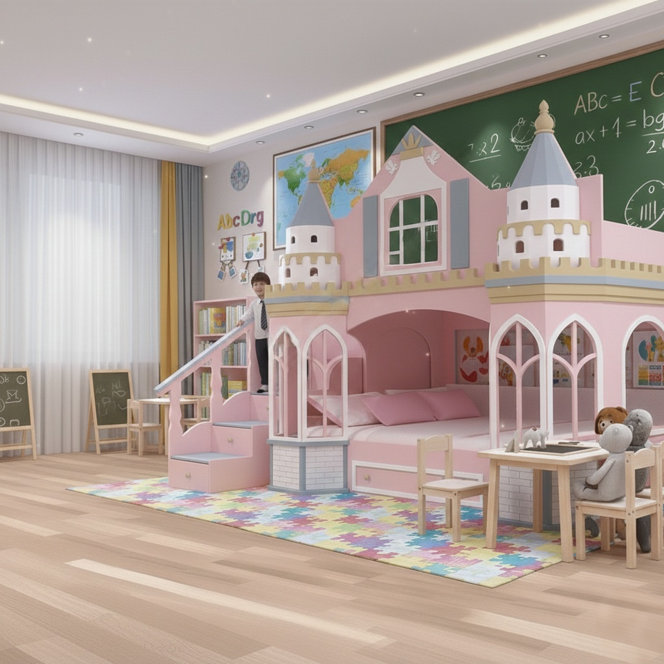 Letto a Castello di Lusso Rosa a Forma di Castello da Principessa, Set di Mobili per Camera da Letto per Ragazze, Dimensioni Personalizzabili con Grande Armadio e Scivolo