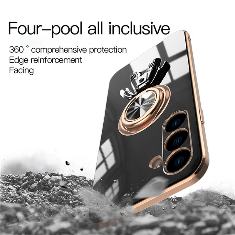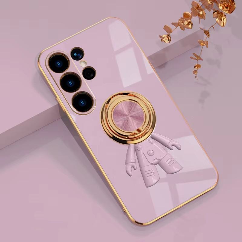 Luxury Plating Cute Astronaut Ring Holder Phone Case for Samsung Galaxy S25 S24 S23 S22 S21 S20 Ultra FE + Soft Silicone Cover