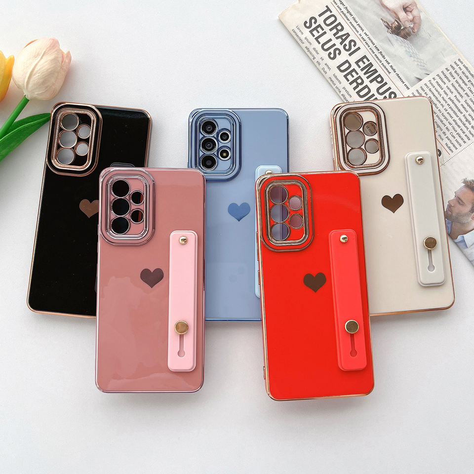 Custodia di lusso con rivestimento laterale Love Heart per telefono cellulare custodia da polso per Samsung per Galaxy S23 S22 Ultra S20 FE S21 Plus A52 A53