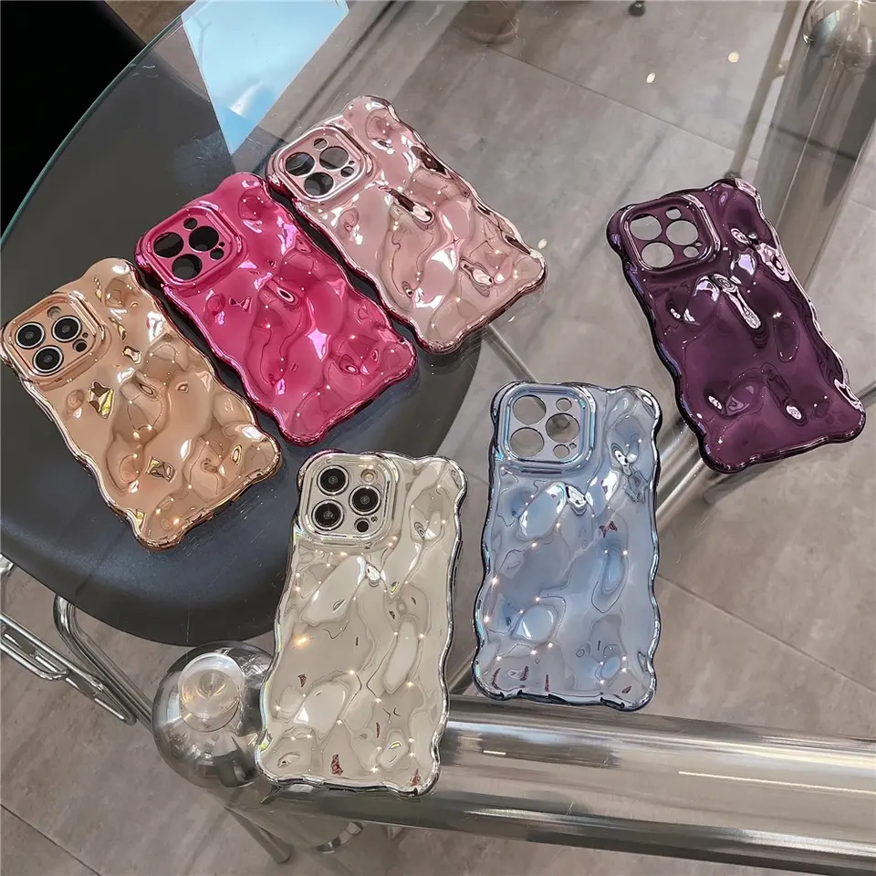 Custodia per telefono con bordo arricciato ondulato e placcato di lusso per iPhone 16 15 14 13 12 Pro Max 3D protezione morbida per irregolarità