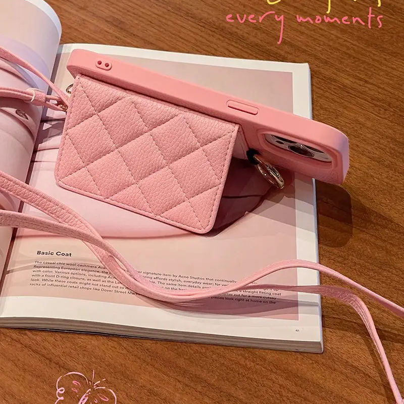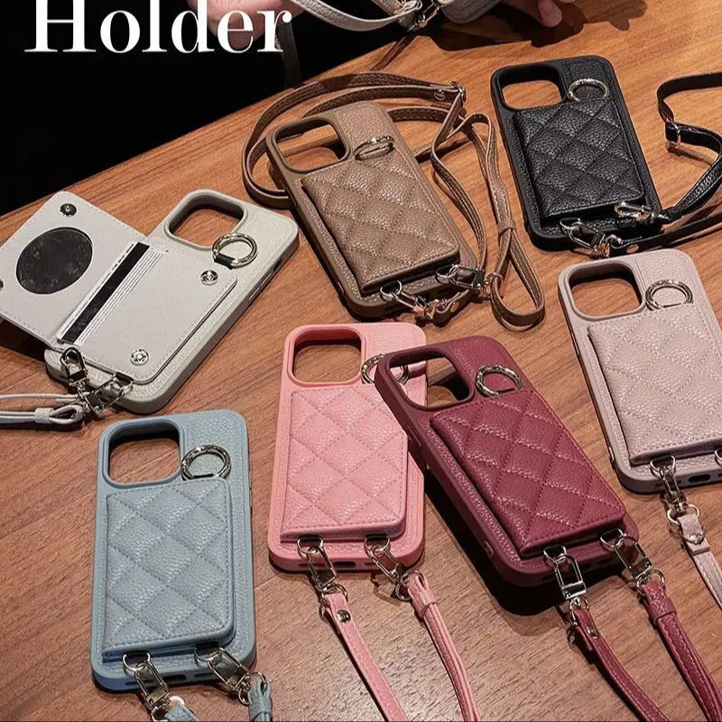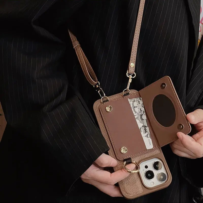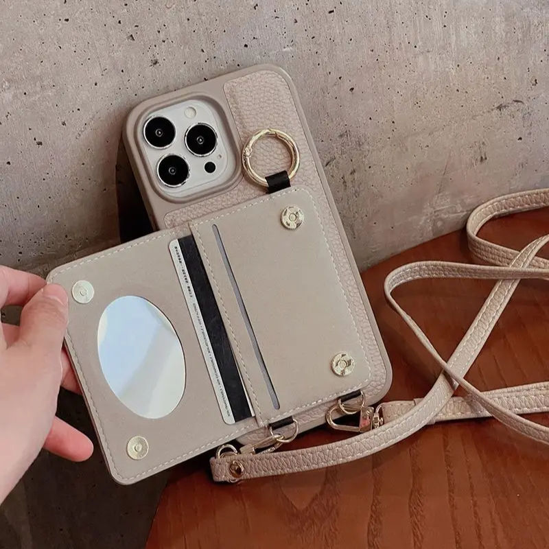 Luxury Plug-in Card Bag Makeup Mirror Phone Strap Woman Mobile