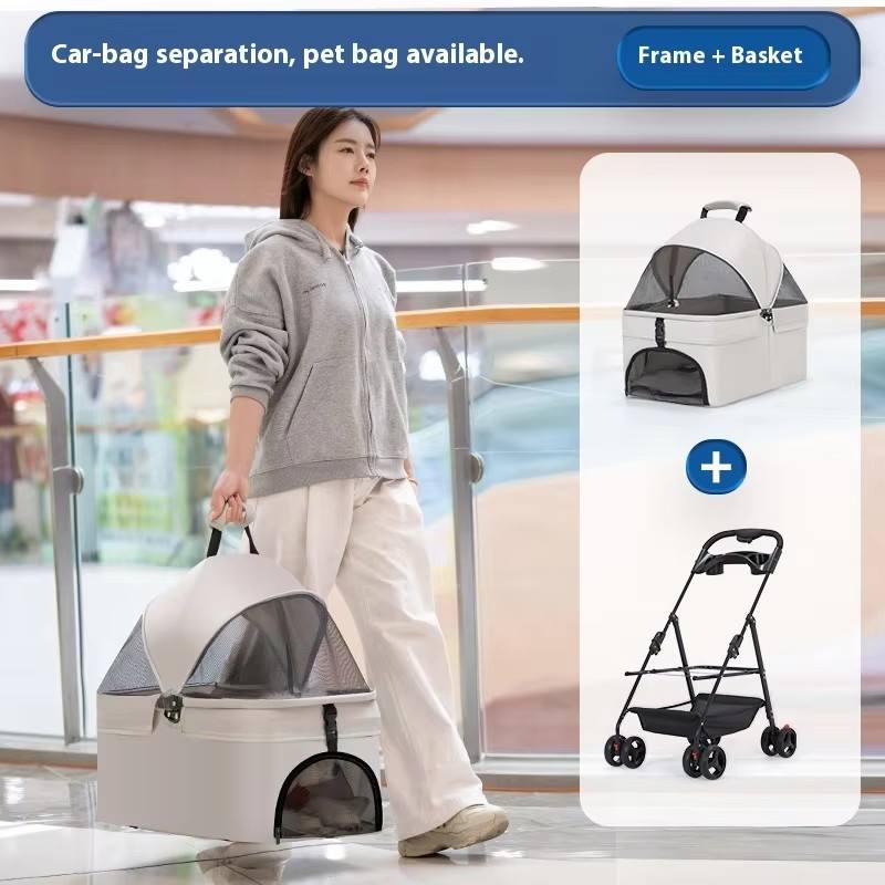 Passeggino pieghevole portatile di lusso staccabile con funzione regolabile per animali domestici piccoli e medi