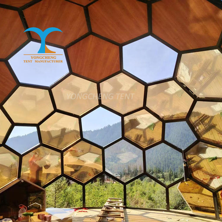 Luxury Prefab Hexagon Glass Dome Tent with Beautiful Interior Decoration Honeycomb House for Glamping Hotel