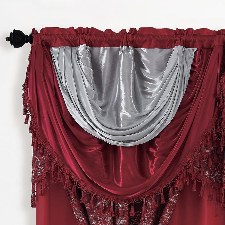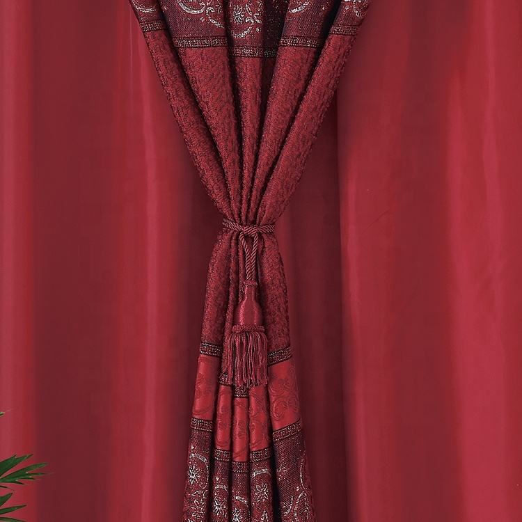 Tende di Lusso Promozionali in Poliestere Rosso, Drappeggi Jacquard Bordeaux Vintage per Finestre Oscuranti