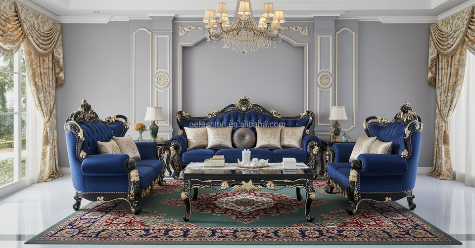 Set di lusso divano damascato rosso con struttura in legno intagliato, mobili da soggiorno in stile classico europeo, elegante divano e poltrona