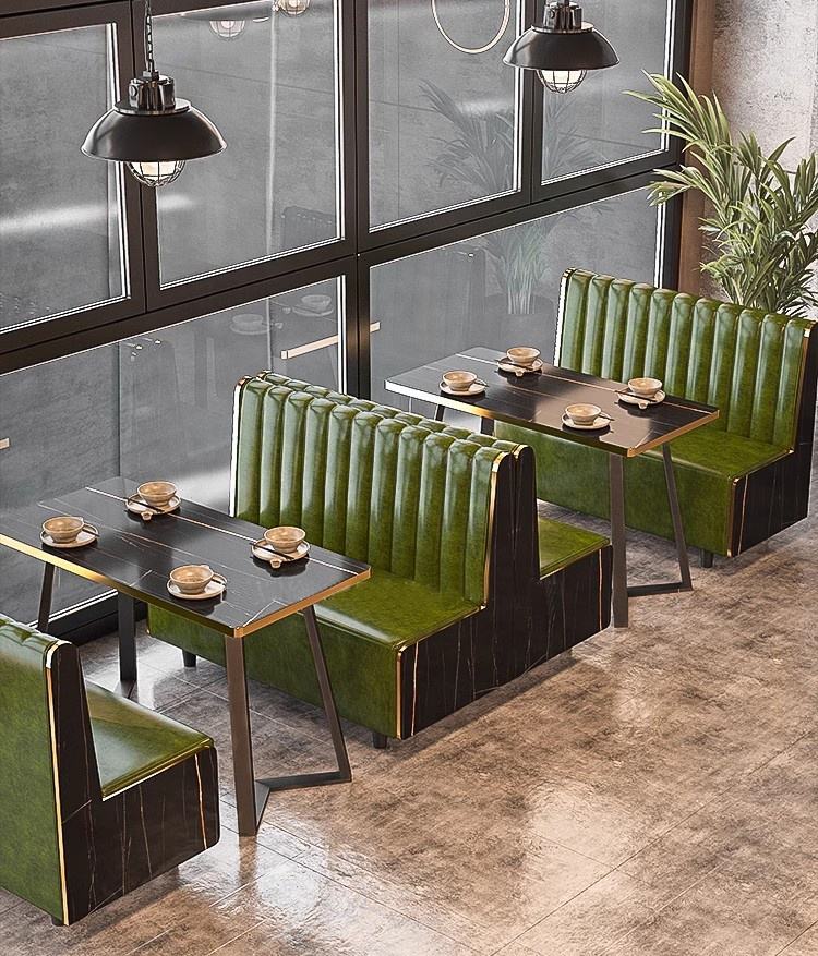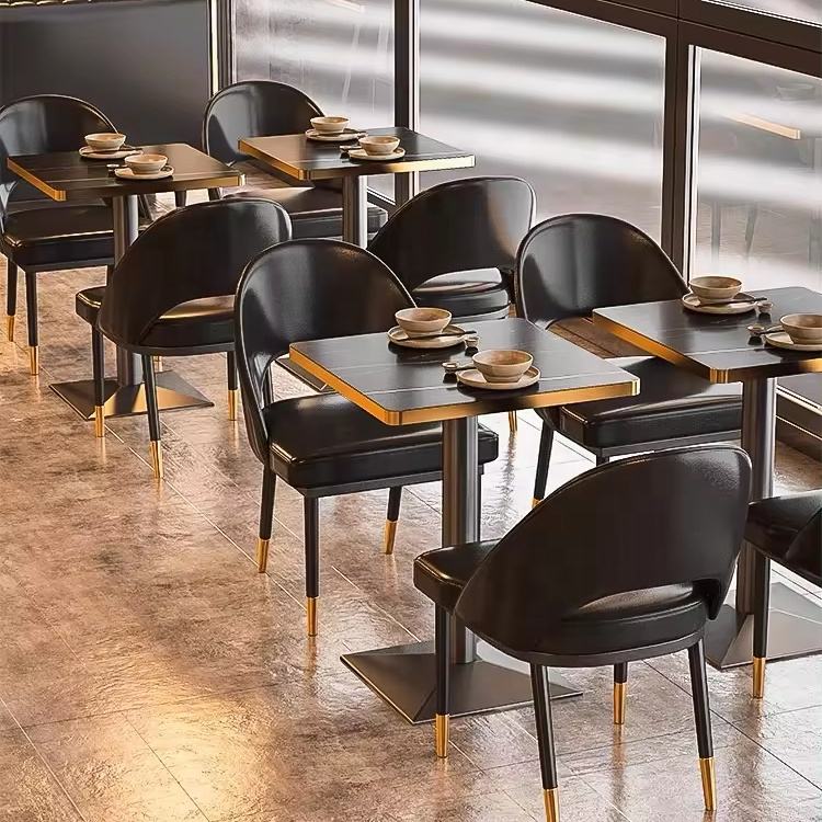 Luxury Restaurant Furniture Sofa Set Black Marble Look Dining Table and Chairs Booth Seating for Club Cafe Pub bar