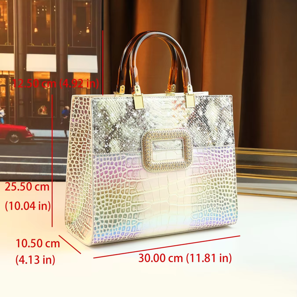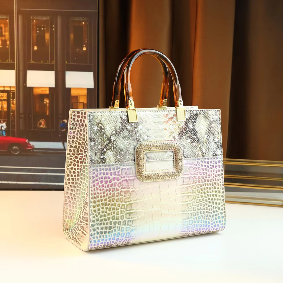 Borsa da donna di grande capacità con chiusura magnetica di lusso design retrò europeo in vera pelle iridescente con motivo coccodrillo