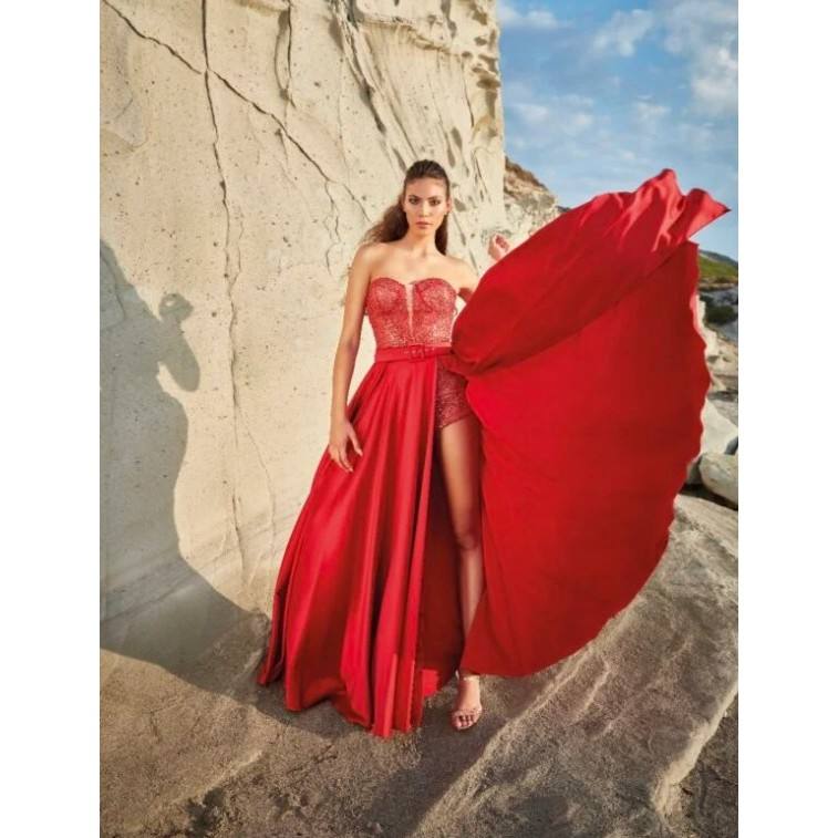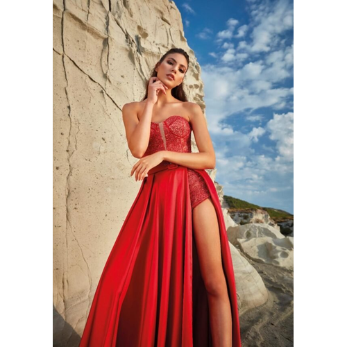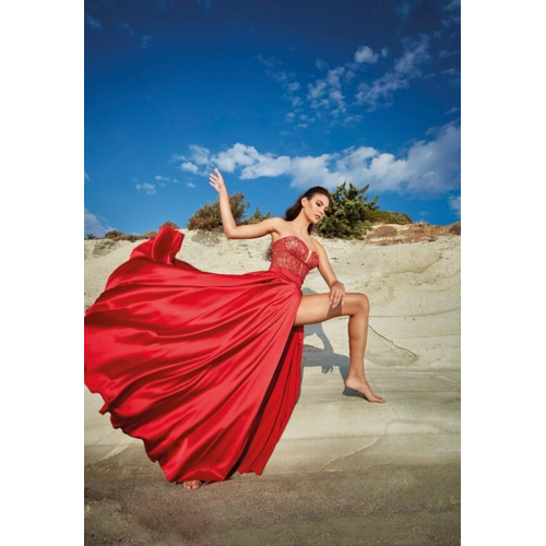 Luxury Rouge Evening Prom Dress Satin A-Line Ball Gown with Spaghetti Straps Beaded Embroidered Floor-Length Size XS