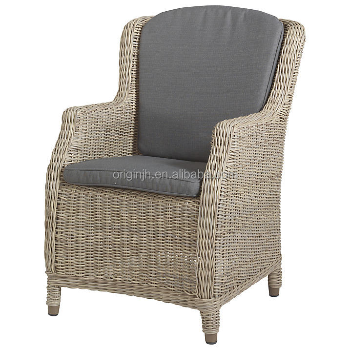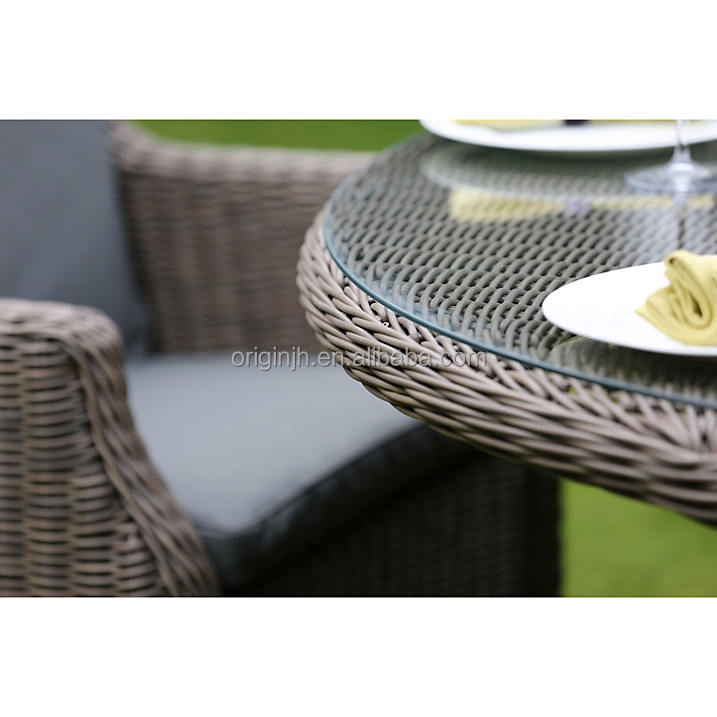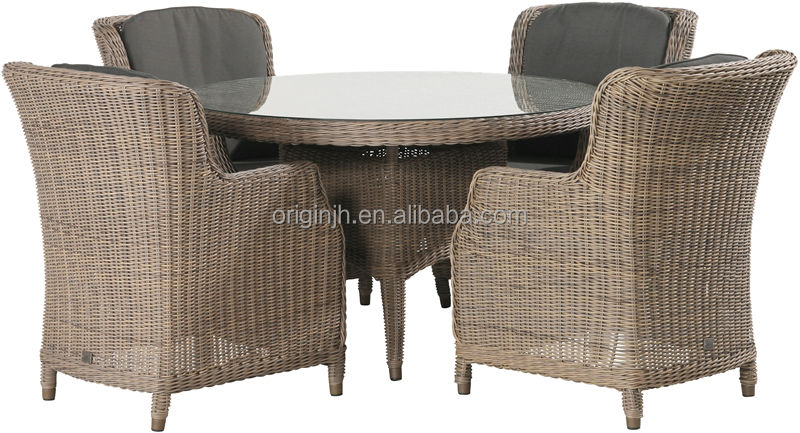 Tavolo Rotondo di Lusso in Vimini Intrecciato per 4 Persone e Sedie da Giardino in Rattan per Sala da Pranzo all'Aperto