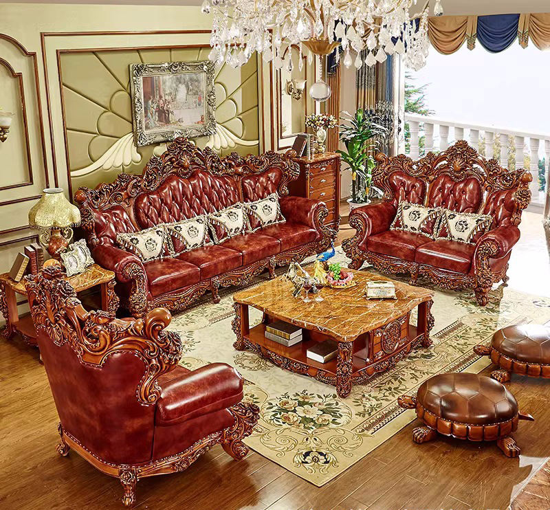 Sofà componibile in pelle reale europea di lusso in legno massello intagliato stile nordico tutta casa Set di mobili Hotel Villa appartamento