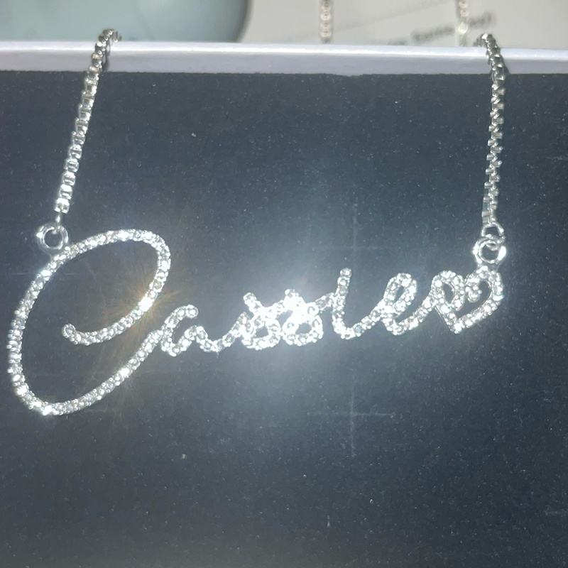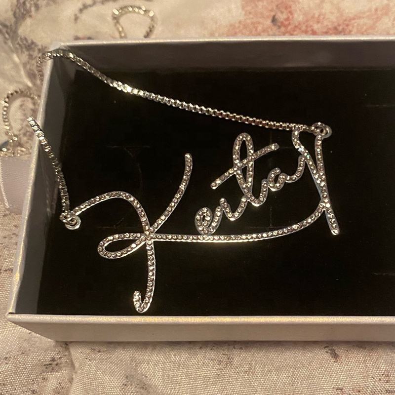 Collana di Lusso con Lettere in Stile Script e Diamanti CZ per Donne, Collane con Nome Personalizzato, Ciondolo in Oro con Cristalli, Gioiello Personalizzato in Acciaio Inossidabile