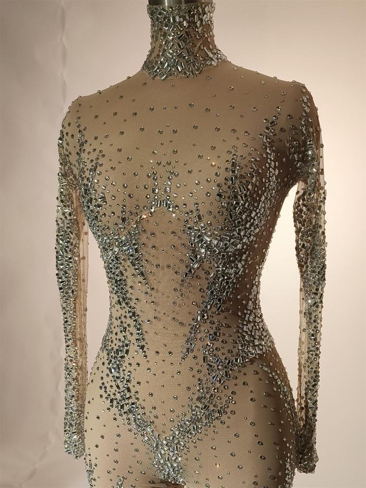 Luxury See Through Crystal Bodycon Romper Stage Performance Dance Leotard Rhinestone Bodysuit Men Club One Piece Jumpsuits
