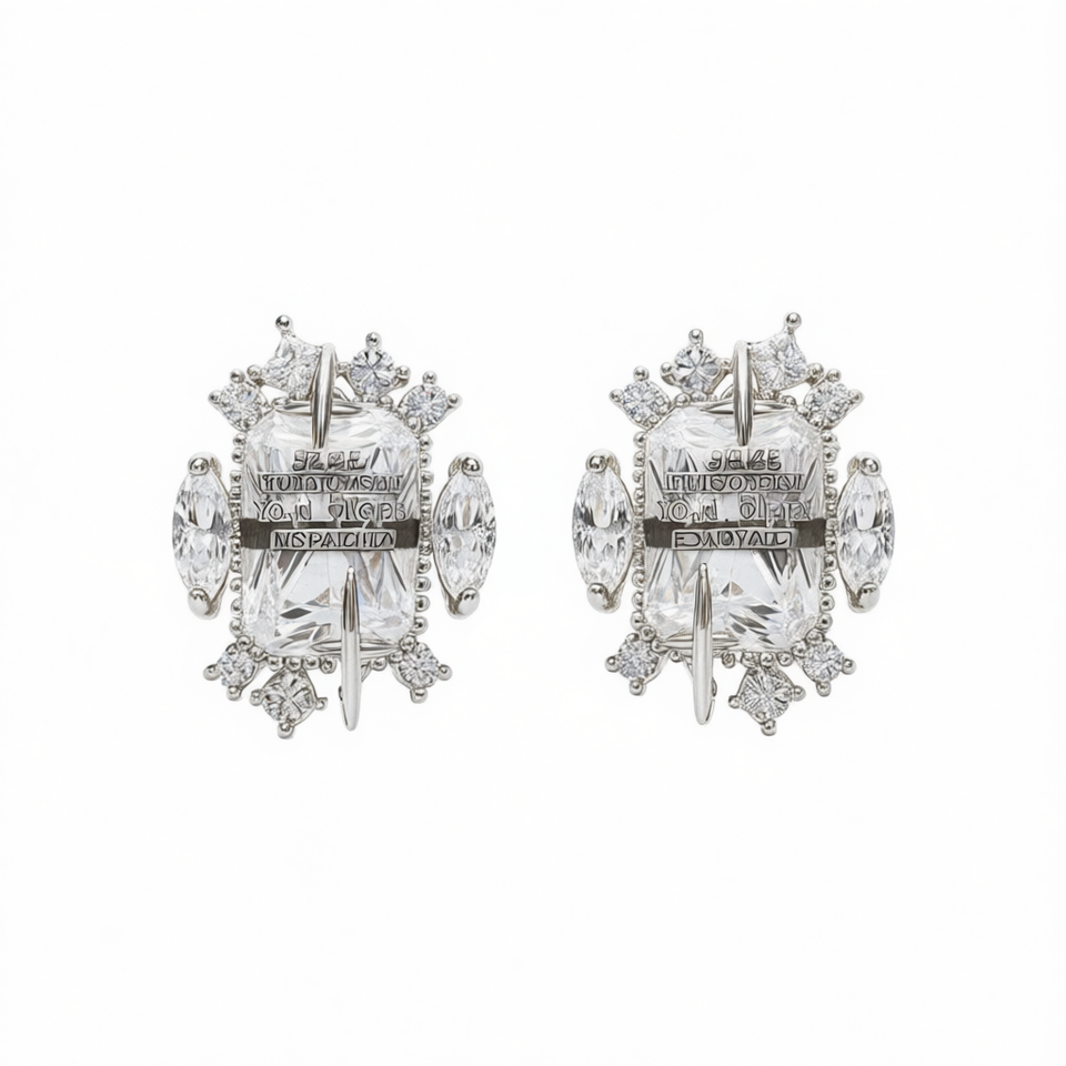 Luxury Shield Stud Earrings 925 Silver Crystal Rhinestone White Gold Women's Party Jewelry Claw Setting