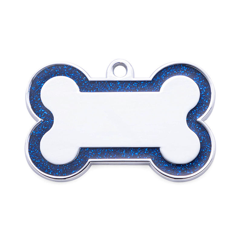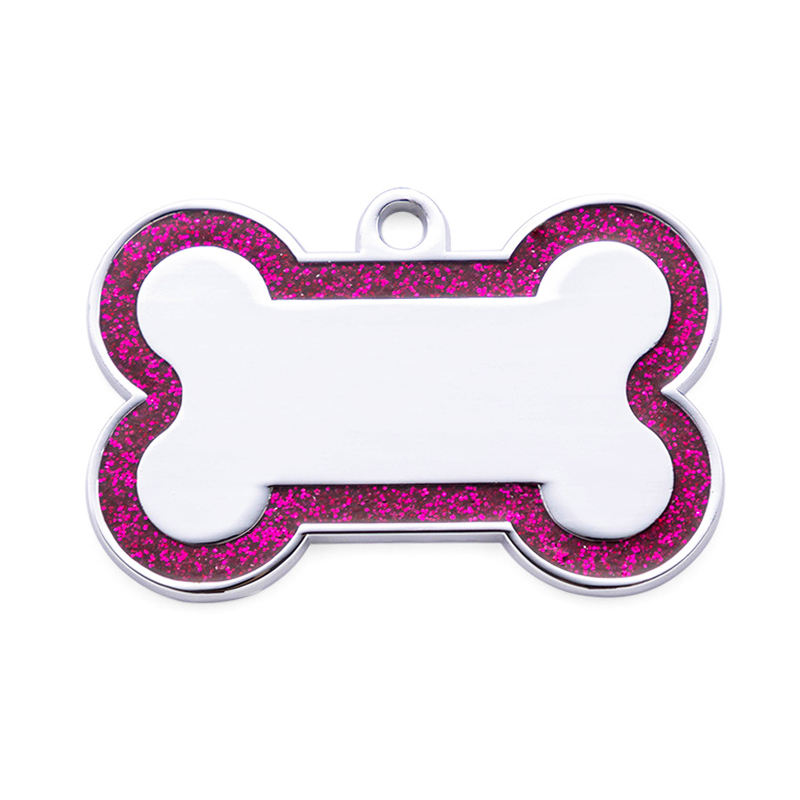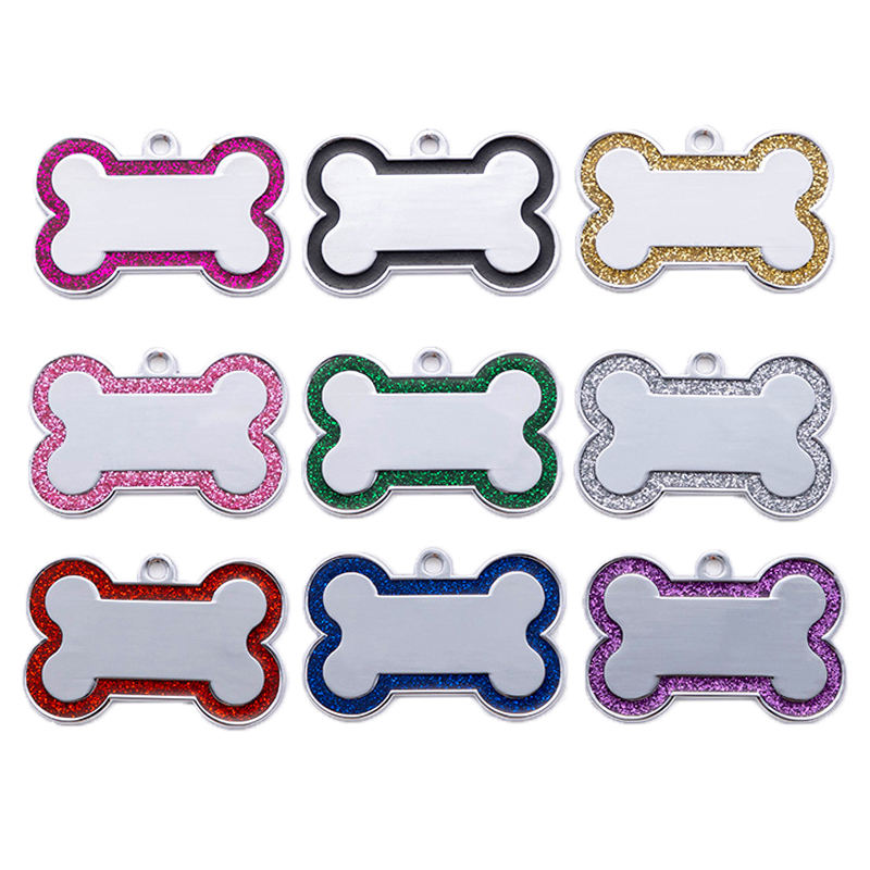 Luxury Shimmering Powder Glitter Zinc Alloy Dog Collar Name Tags Solid Bone Shape Anti-Lost Tag Custom ID Engraving Simple Style