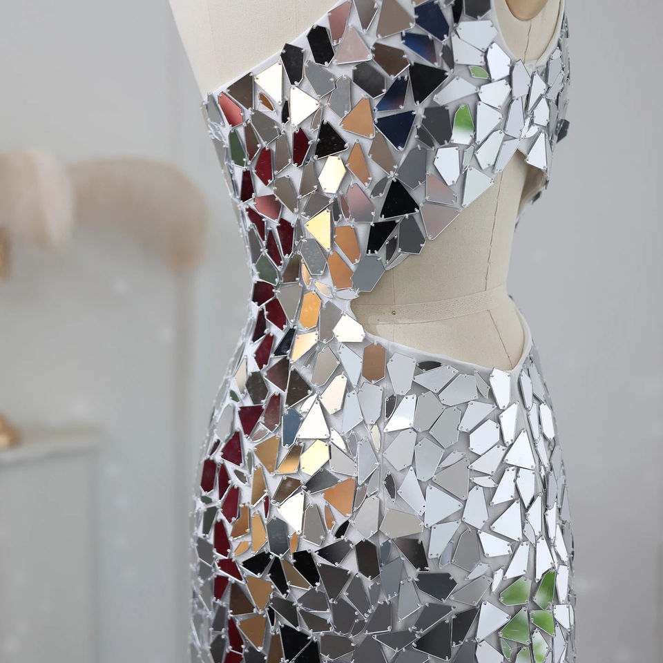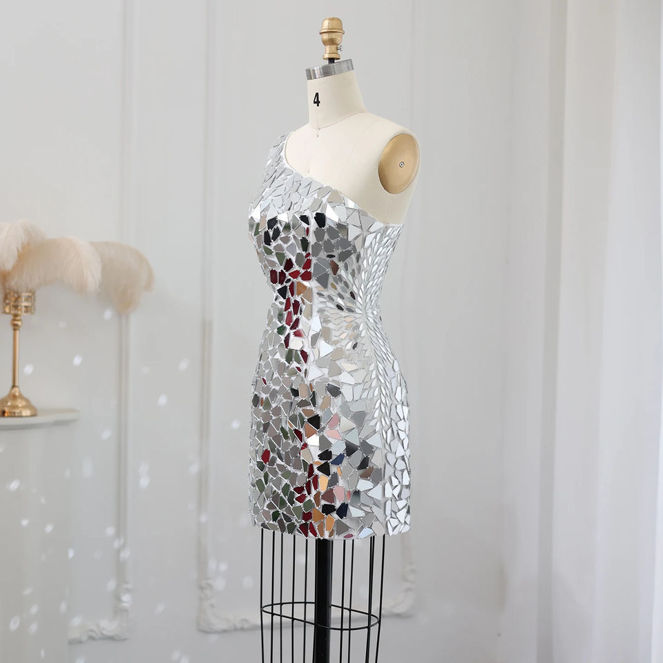 Argento di lusso Mini abiti da ballo da Cocktail corti per le donne matrimonio di compleanno scintillante paillettes abiti da sera per feste Sz011-1