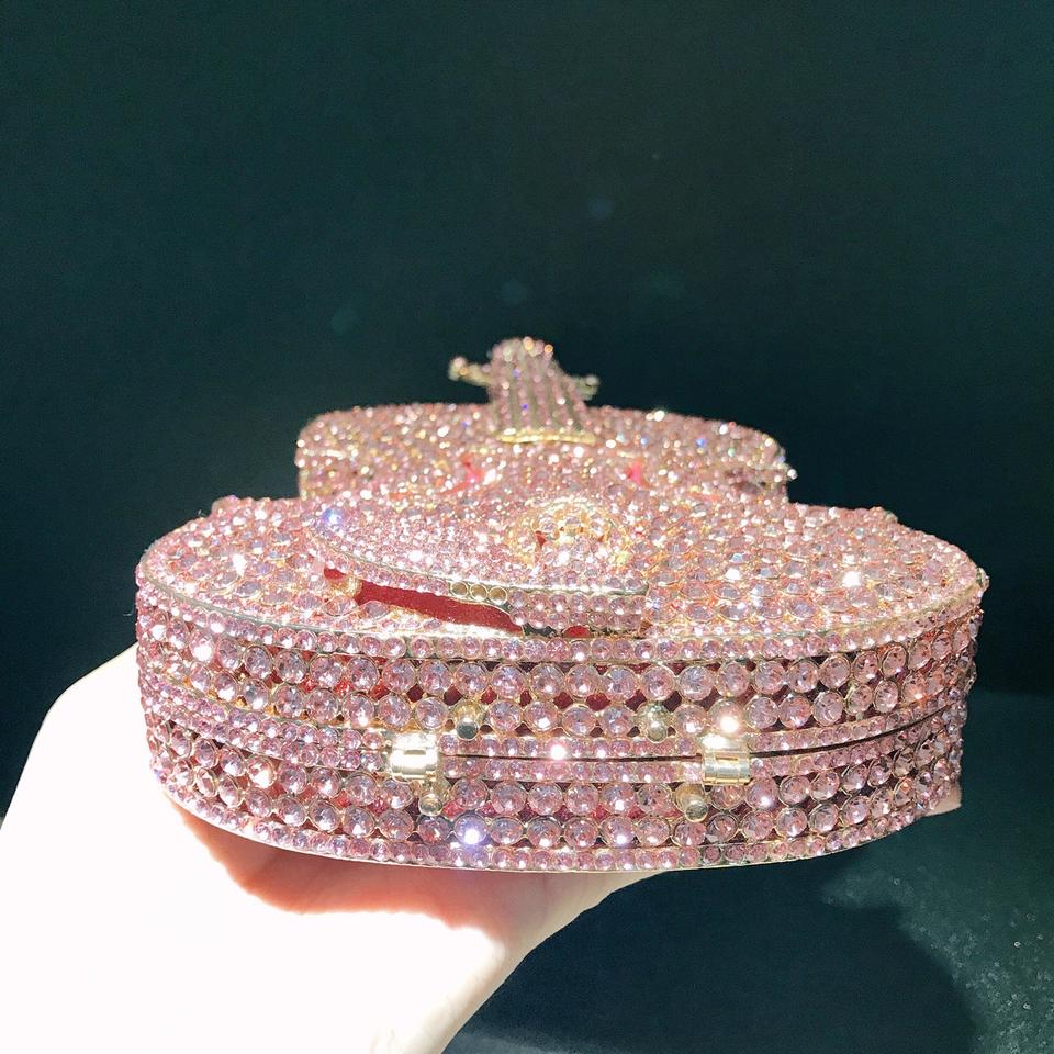 Luxury Silver for Pink and Gold Bling Crystal Stone Metal Evening Party Clutch Purse Bag for Women Girls Birthday Party