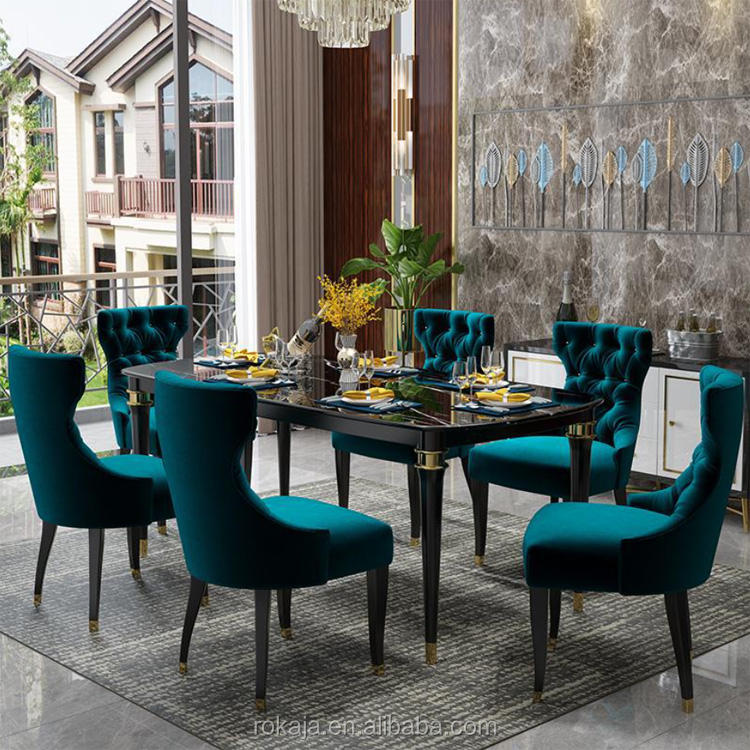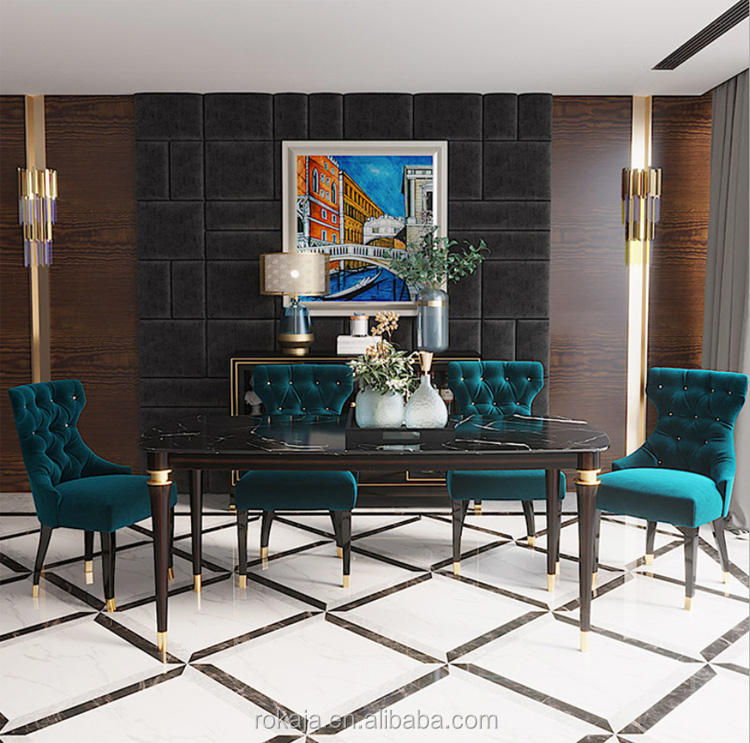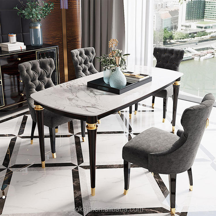 Luxury Simple 4 Feet Dining Table Set White Black Marble Top Dinning Tables Solid Wood Resin Dinner Table Set