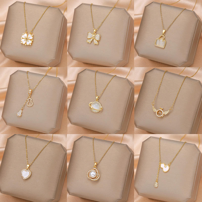 Luxury Stainless Steel 18K Clover Necklace Gold Diamond Butterfly Fashion Star Moon Pendant Women's Clavicle Chain Jewelry