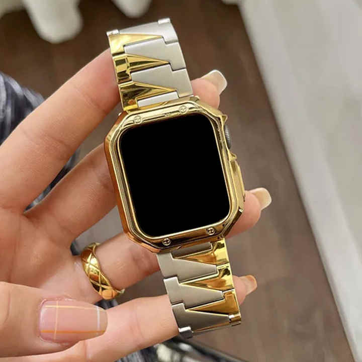 Cinturino di Lusso in Acciaio Inossidabile Dorato Personalizzato per Apple Watch Serie 11/10/9/8 38mm 40mm 41mm
