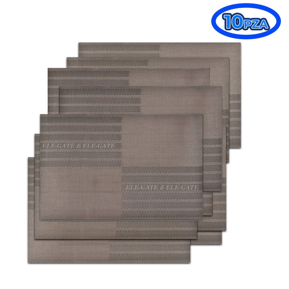 Set di Tovagliette di Lusso a Righe, 10 Pezzi, Lavabili e Antiscivolo per Tavolo da Pranzo, in Poliestere Stampato, Lino e Plastica per Casa e Cucina