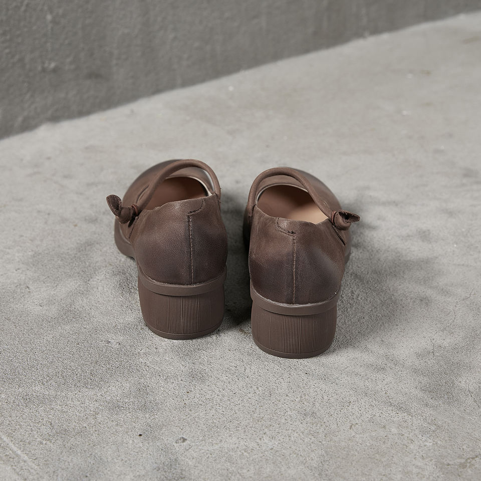 Lusso elegante in vera pelle personalizzato stile Vintage fascia elastica punta tonda tacco spesso per donna e donna ufficio tacchi alti