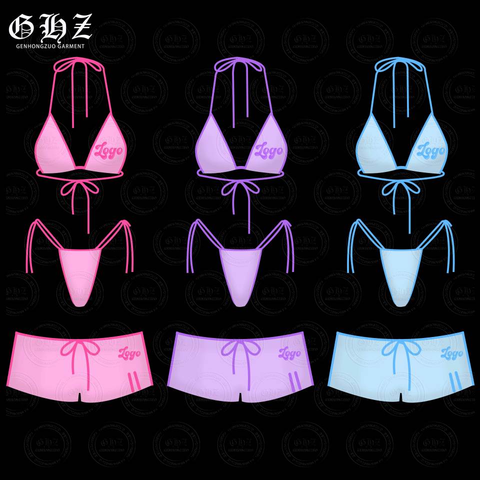 Luxury Swimwear Set Custom LOGO Fitness Sexy Swimsuit 3 Piece Set Micro Mini Bikini and Boy Shorts Bathing Suit for Women 2025