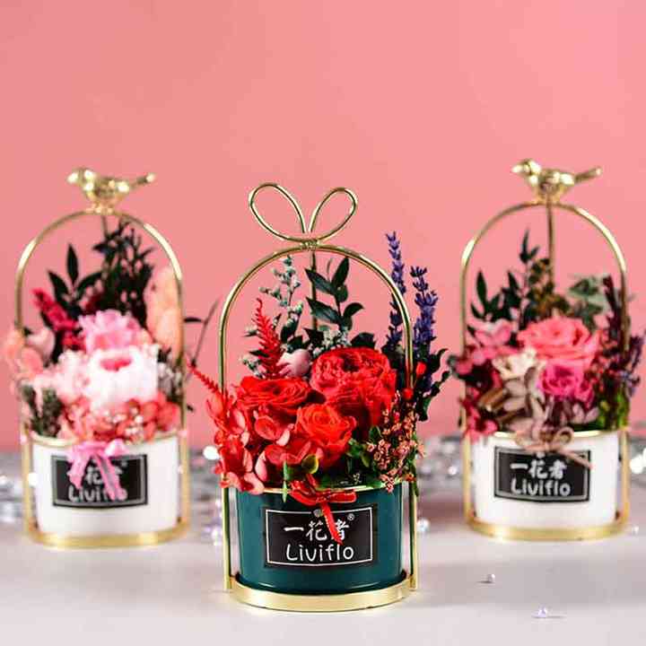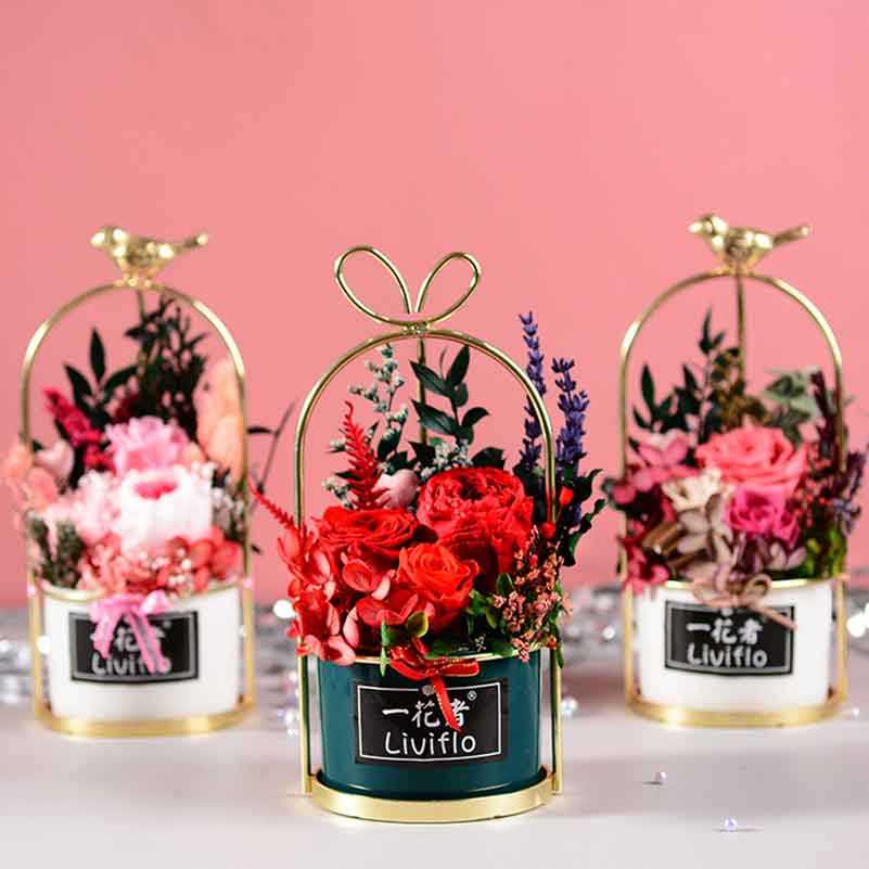 Tavolo di lusso decorazione fiori piante immortale conserve di fiori in vasoNome del prodotto