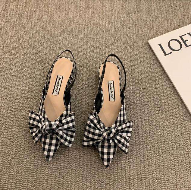 Sandali Piatti di Lusso con Tacco Spesso e Fiocco, Nuove Scarpe Primaverili ed Estive da Donna, Décolleté Nere a Pois con Tacco Basso