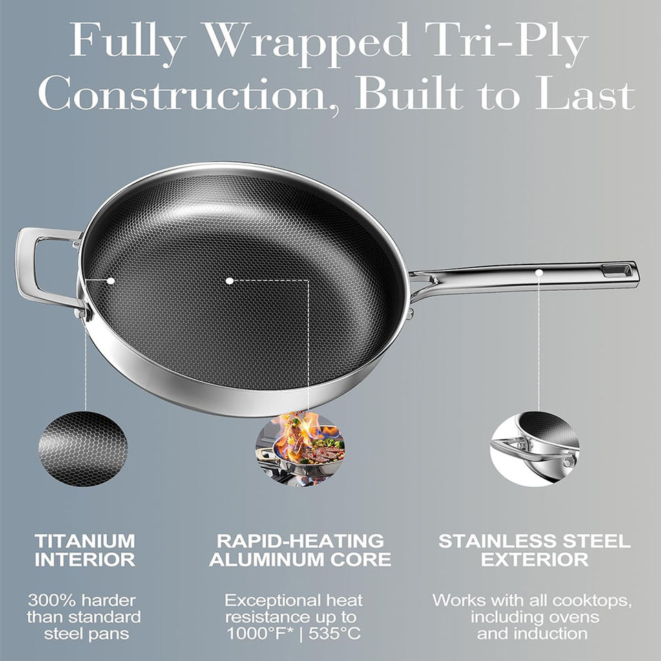 Padella e casseruola di lusso in titanio antiaderente a triplo strato in acciaio inossidabile con coperchio in vetro per piano cottura a induzione