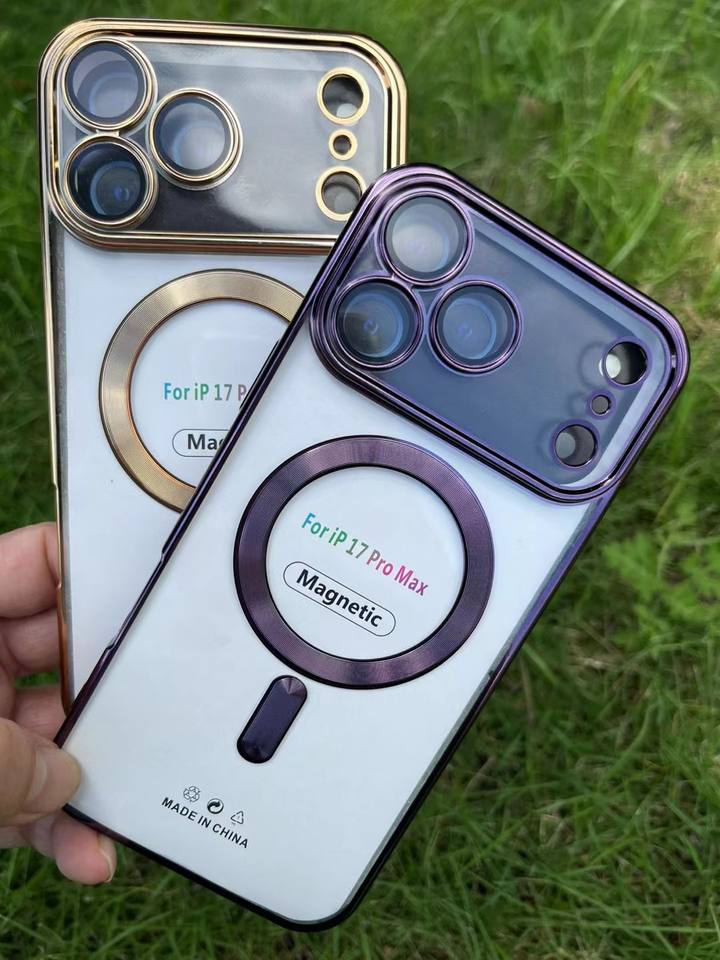 Luxury Transparent Electroplated TPU Magnetic Bumper Cover Wireless Charging Safe for iPhone 17 16 15 14 13 12 Pro Max Plus Case