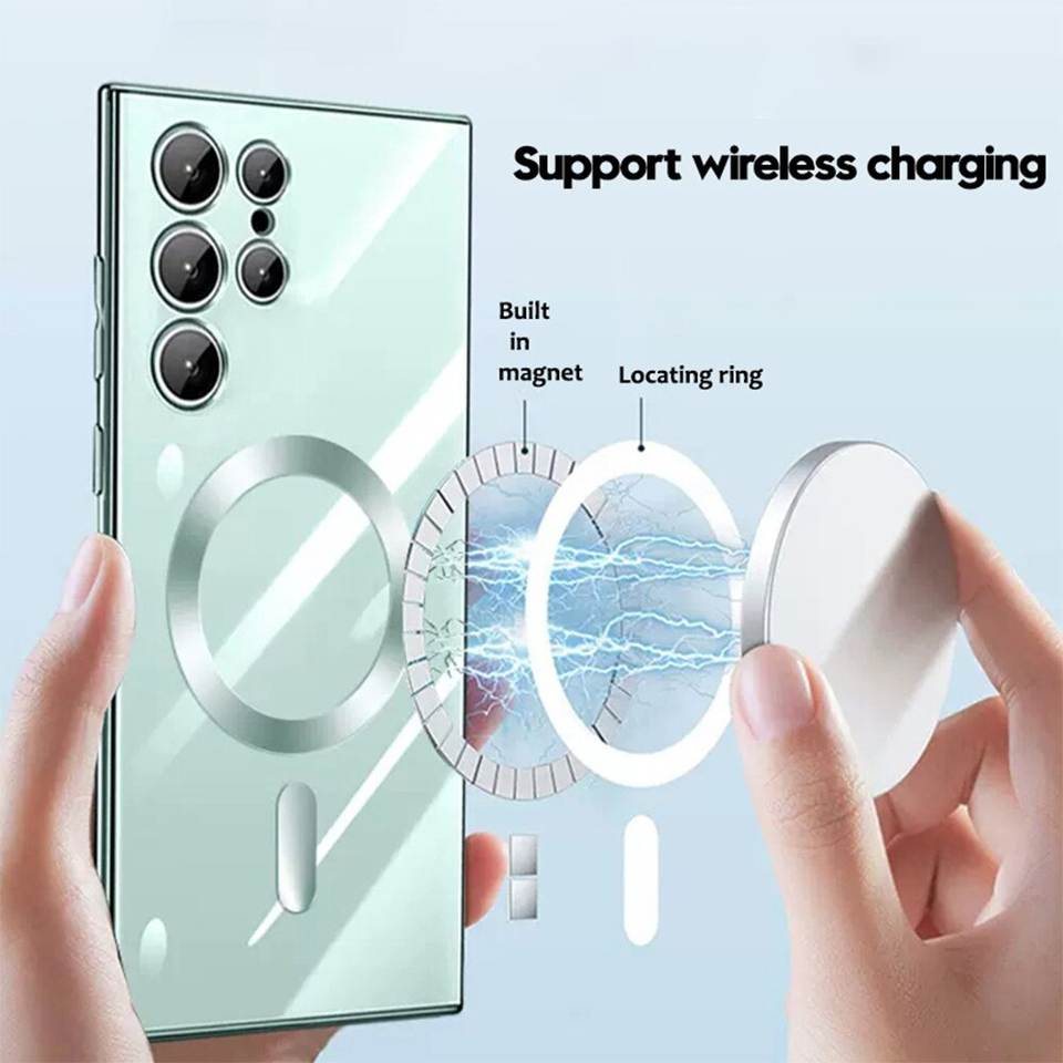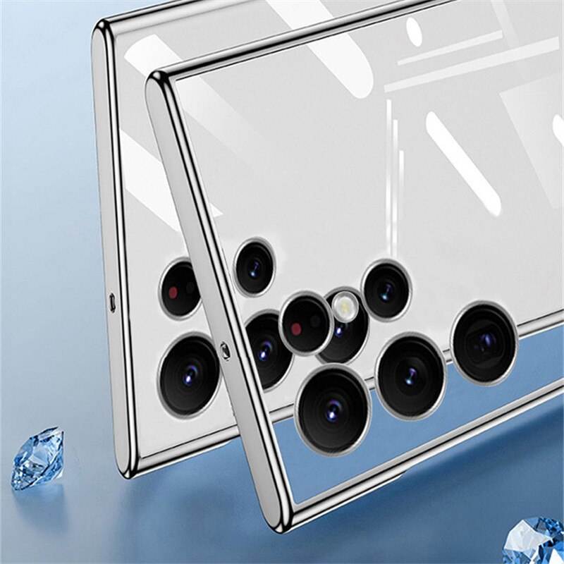 Custodia per telefono con placcatura trasparente di lusso per Samsung Galaxy S21 S22 S23 Ultra Plus Wireless con copertura trasparente in TPU