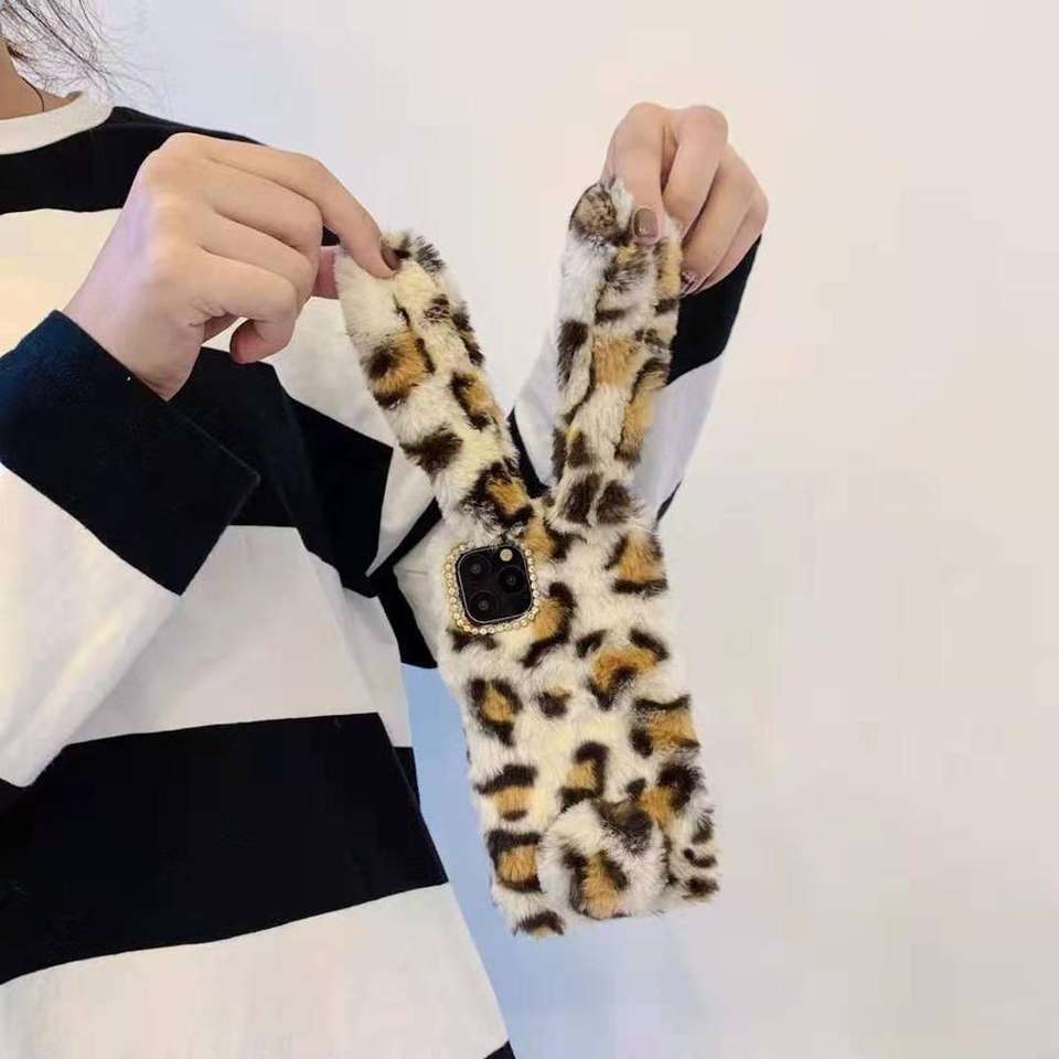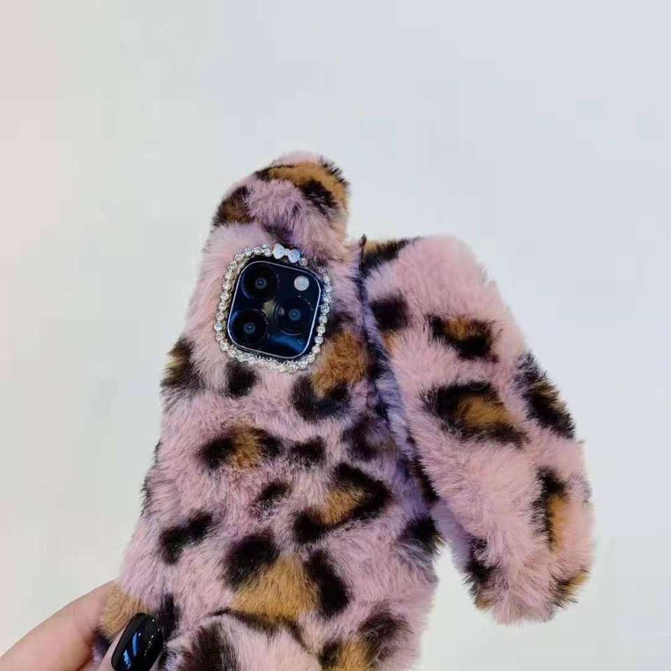 Custodia per iPhone di Lusso in Morbido Peluche Effetto Pelliccia di Coniglio Calda e Soffice per iPhone 6 7 8 Plus Xr X Xs Max 11 12 13 14 15 16 Pro Max Mini