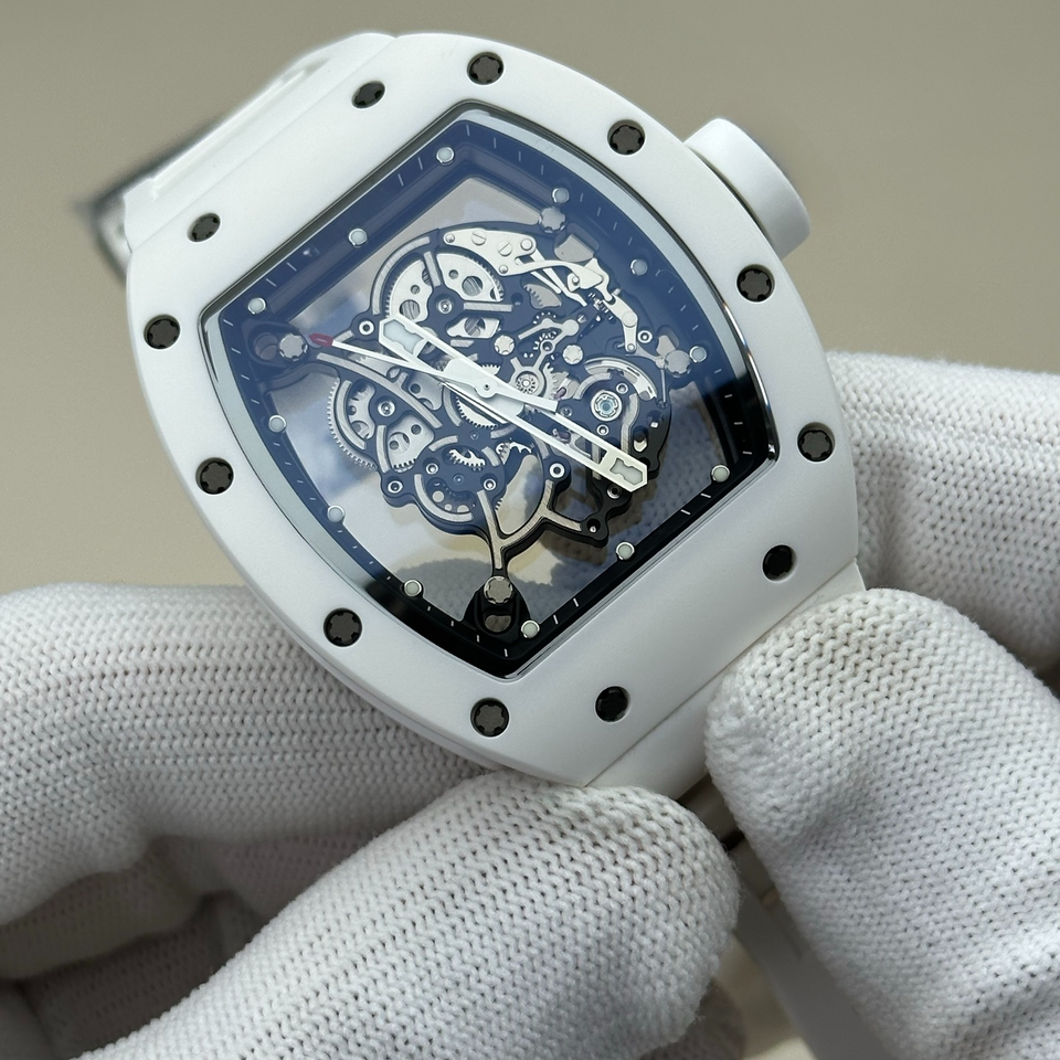 Luxury Watches for Men 055 Style Bubba Watson Grey TiC Titanium Bezel White Rubber Strap Manual Mechanical Watch Wristwatch