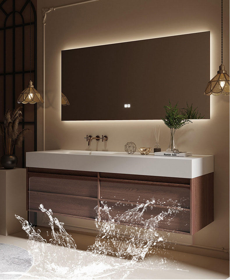 Mobile da Bagno di Lusso Impermeabile Sospeso in Acciaio Inox con Lavabo Singolo e Specchio Smart Nuovi Mobili da Bagno