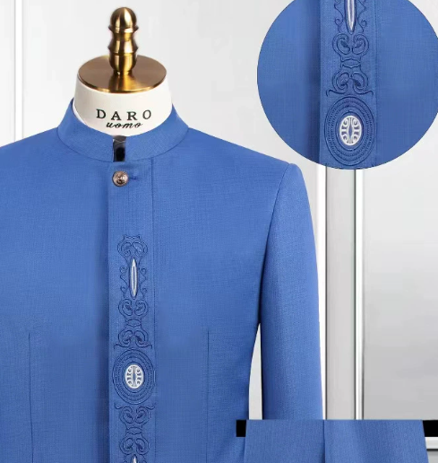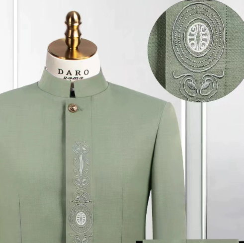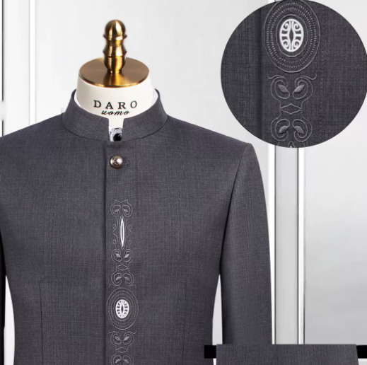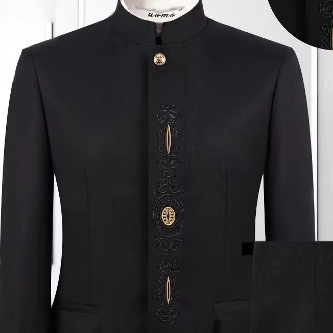 Collo mandarino: Il collo mandarino offre un aspetto moderno ed elegante, aggiungendo un tocco unico al design tradizionale dello smoking.