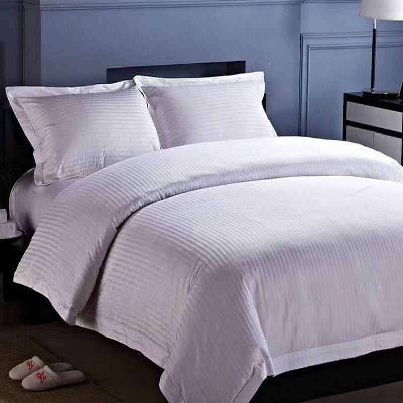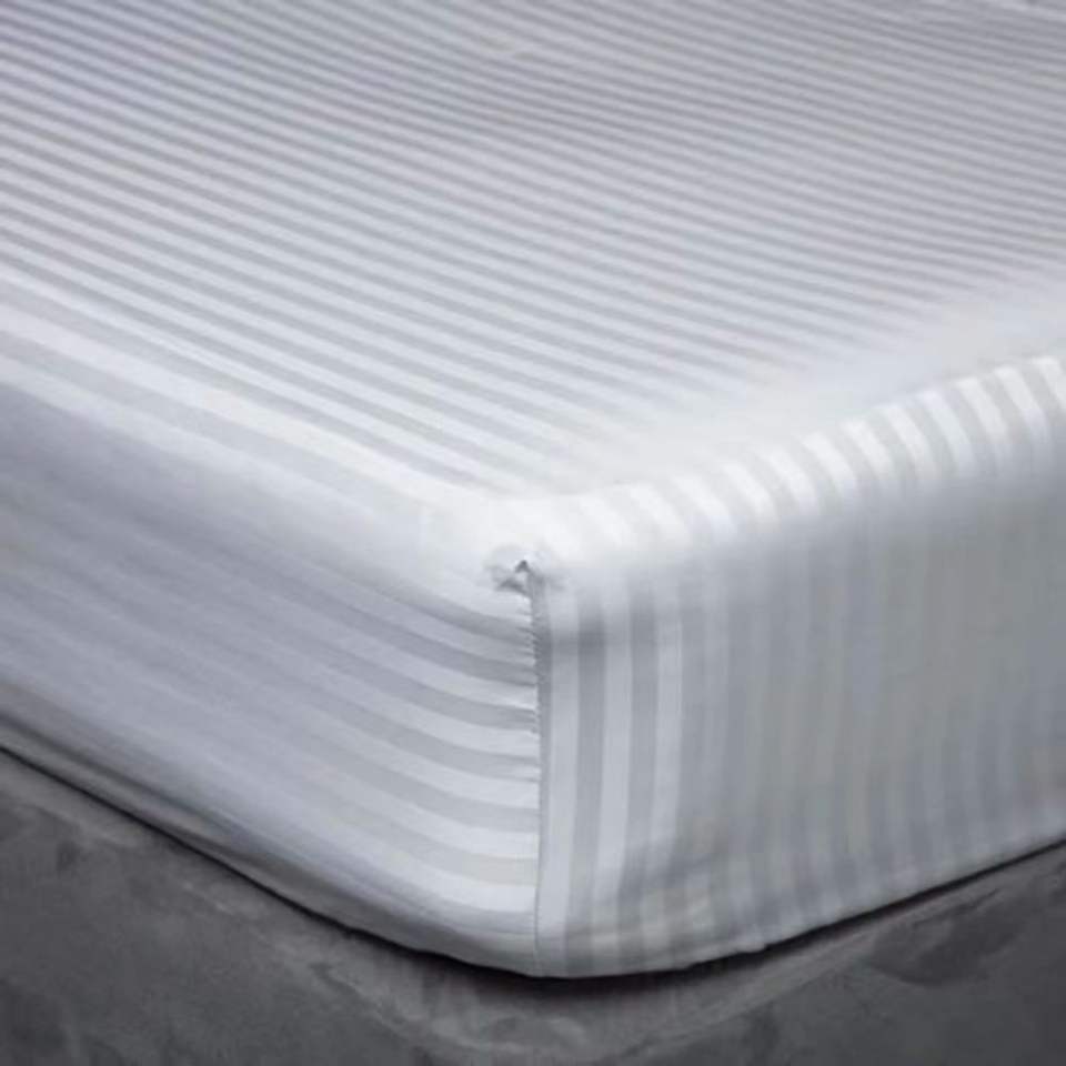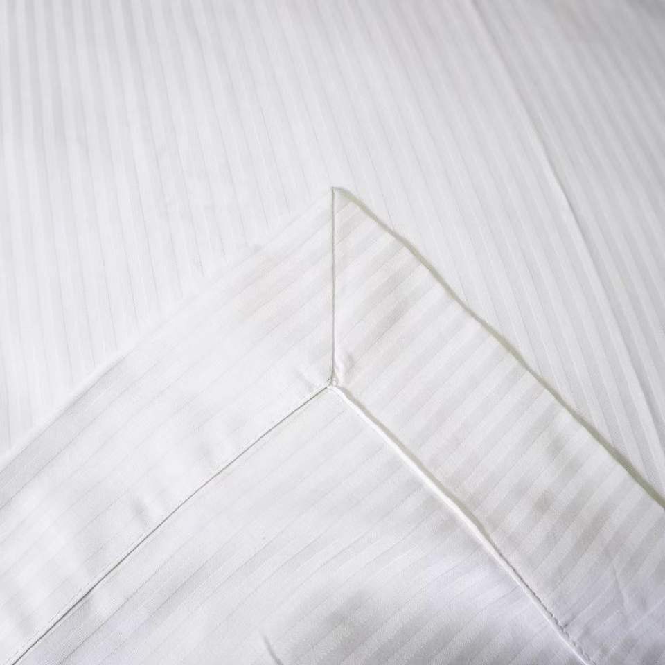 Set di Lenzuola di Lusso Qualità Hotel in Morbido Cotone Egiziano 100% a Righe da 1 cm, Colore Bianco, 4 Pezzi