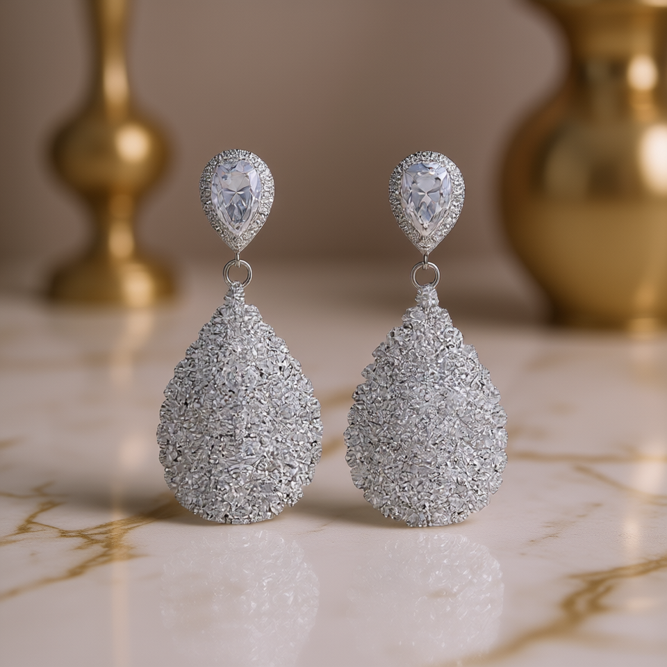 Luxury White Gold Crystal Drop Earrings For Women Wedding Bezel Setting 925 Silver Teardrop Shape Rhinestone Jewelry