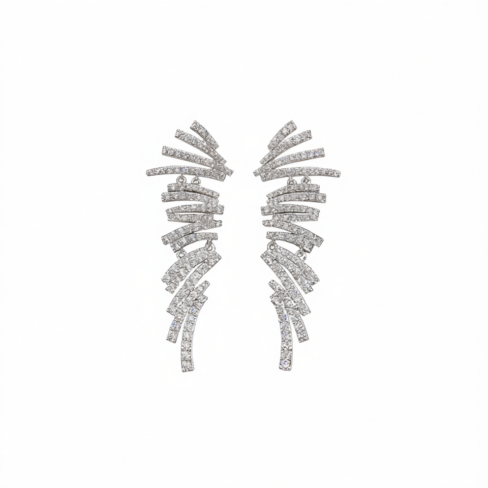 Luxury White Gold Crystal Wing Chandelier Earrings For Women Party Jewelry 925 Silver Channel Setting Rhinestone Earrings