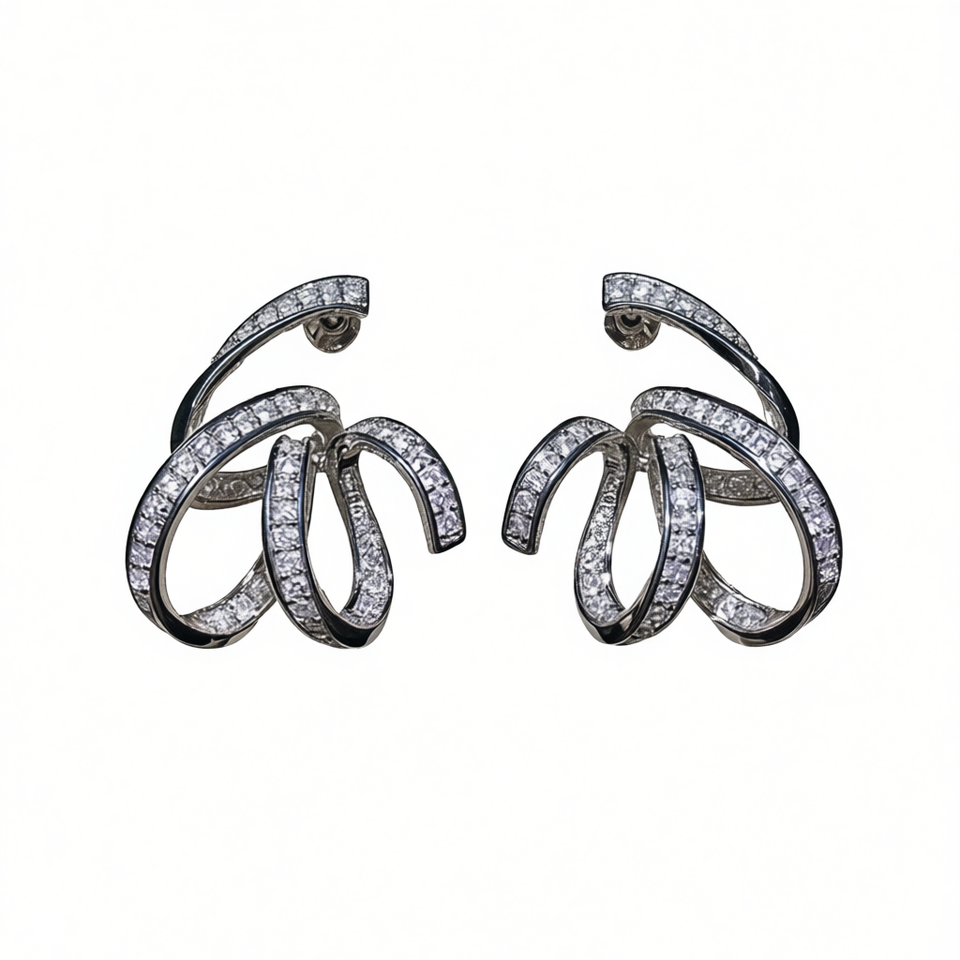 Luxury White Gold Cuff Earrings With Crystal Rhinestone Geometric Design For Women Party Jewelry 925 Silver Channel Setting