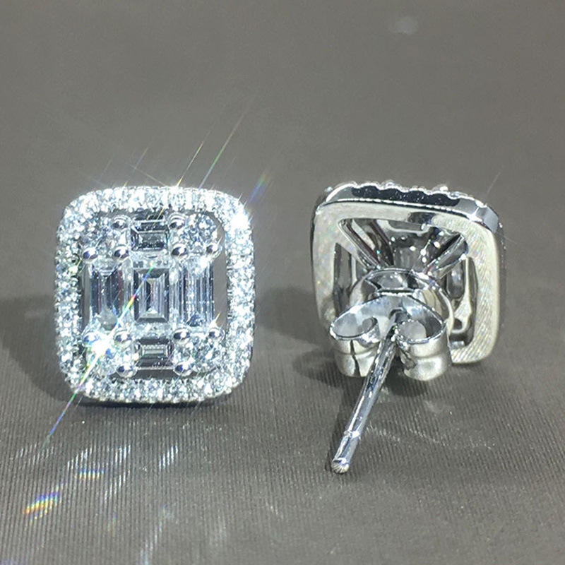 Luxury White Gold Diamond Earrings Emerald Cut D Color Natural Diamonds Unisex Everyday Wear Jewelry