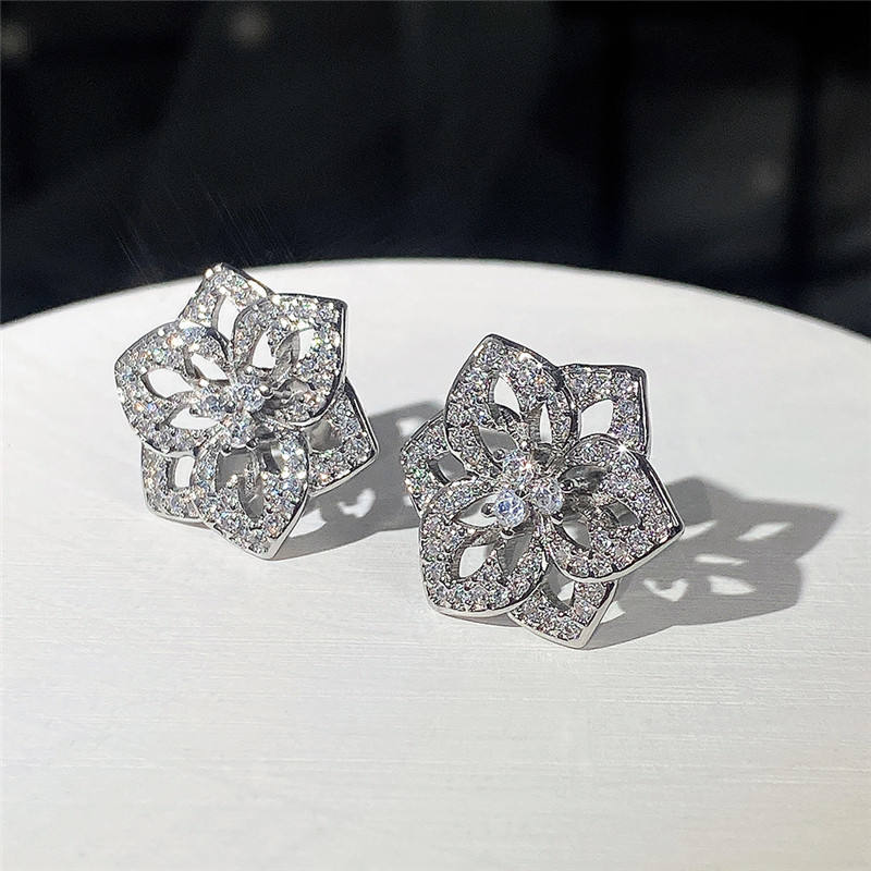 Luxury White Gold Diamond Earrings Round Brilliant Cut H Color Natural Diamonds Women's Wedding Jewelry Silver Setting