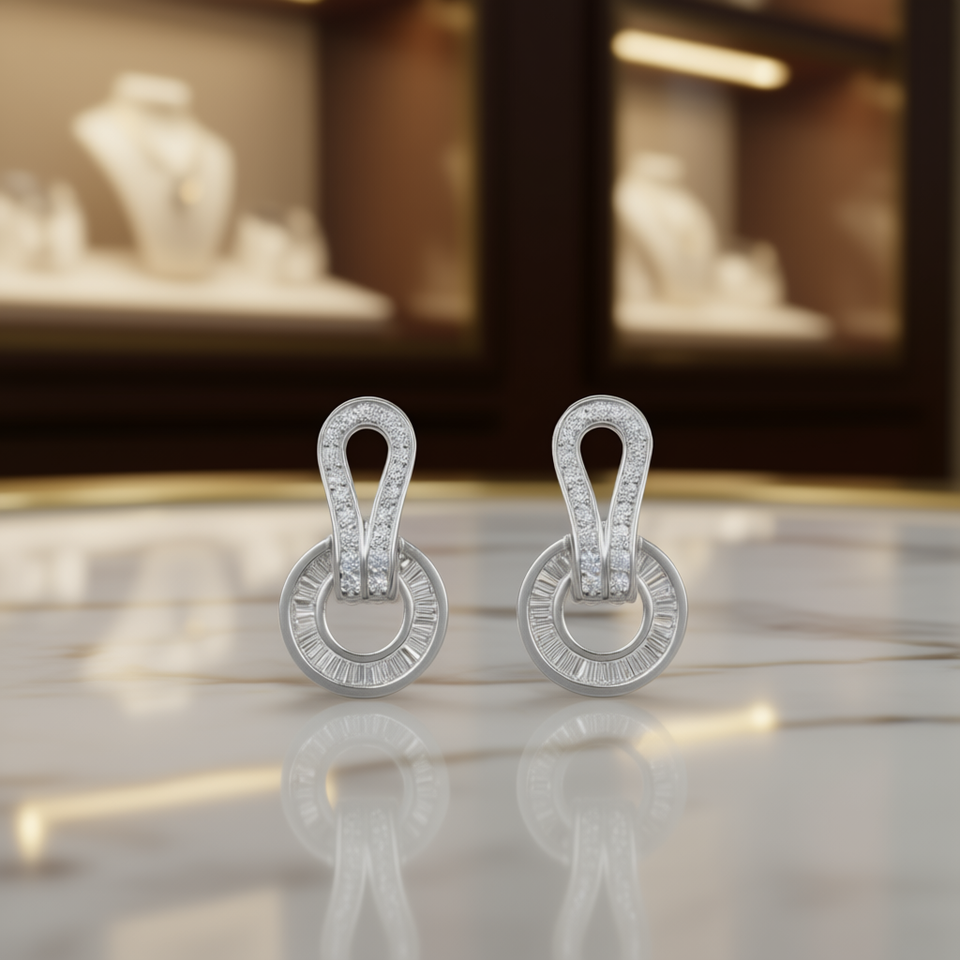Luxury White Gold Diamond Stud Earrings Geometric Design Baguette Cut 925 Silver Channel Setting Women's Everyday Wear
