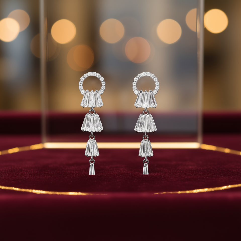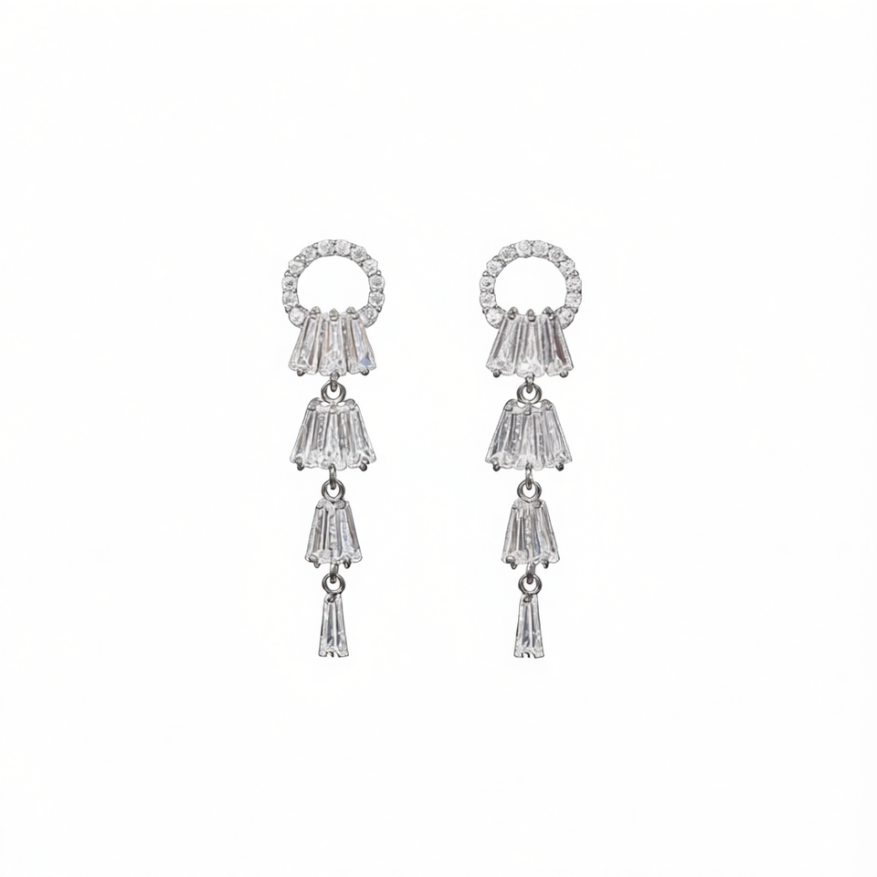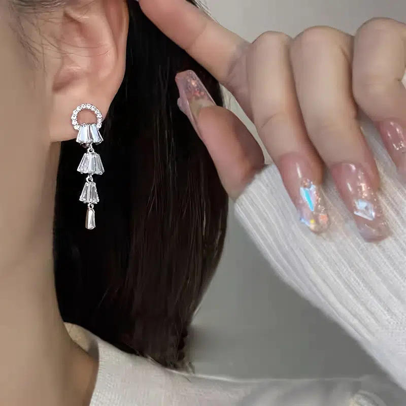 Luxury White Gold Drop Earrings Tassel Crystal Rhinestone Prong Setting Women's Party Jewelry